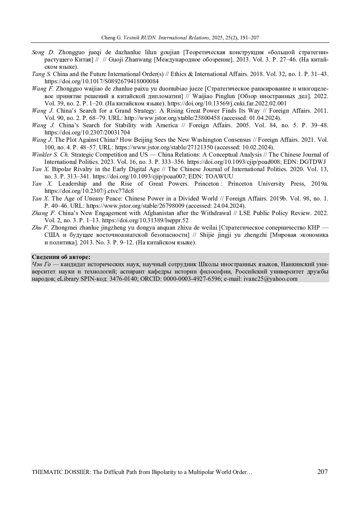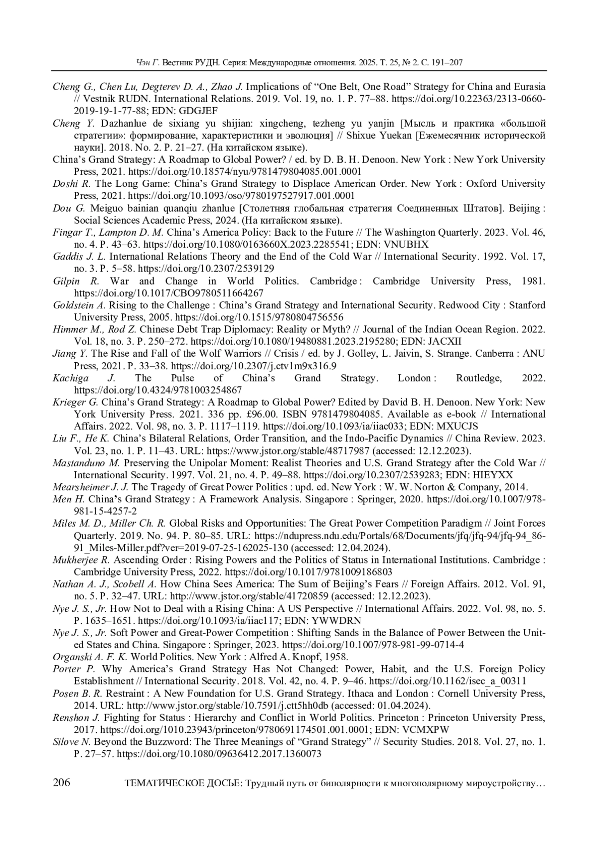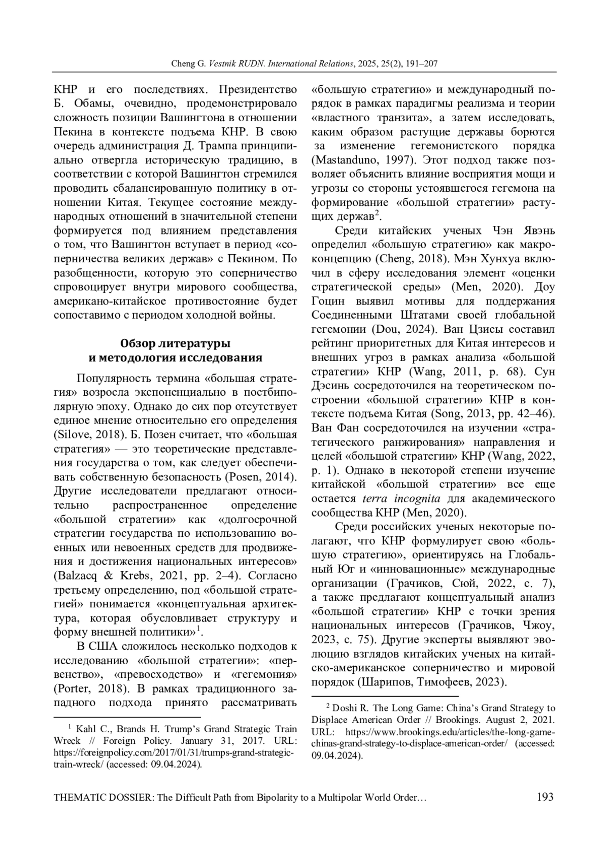 ЧЭН Г. Г. «БОЛЬШАЯ СТРАТЕГИЯ» КНР В КОНТЕКСТЕ КИТАЙСКО-АМЕРИКАНСКОГО СТРАТЕГИЧЕСКОГО СОПЕРНИЧЕСТВА // ВЕСТНИК РОССИЙСКОГО УНИВЕРСИТЕТА ДРУЖБЫ НАРОДОВ. СЕРИЯ: МЕЖДУНАРОДНЫЕ ОТНОШЕНИЯ. 2025. ТОМ 25 № 2