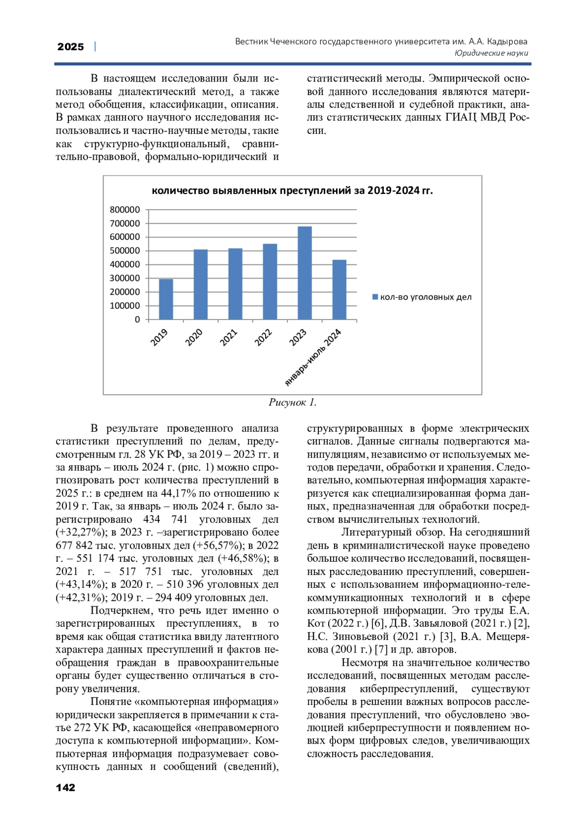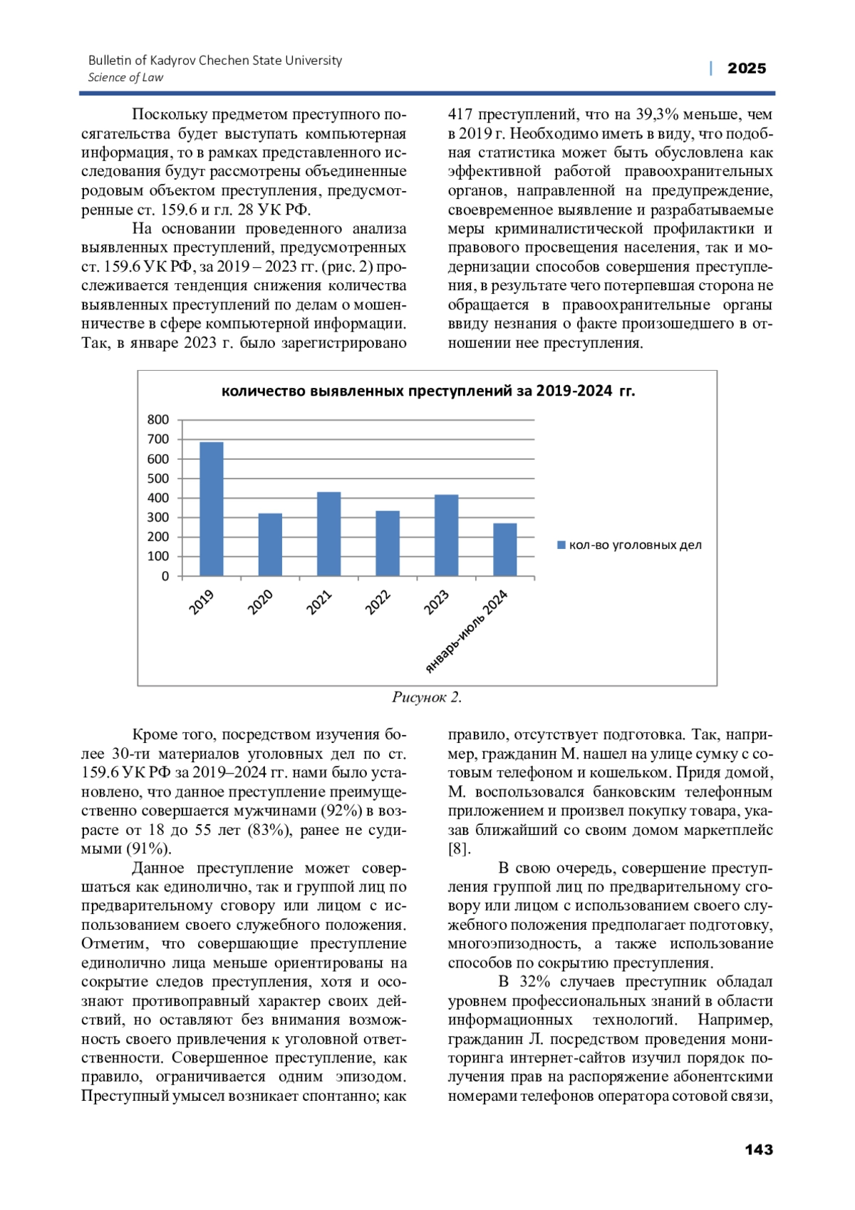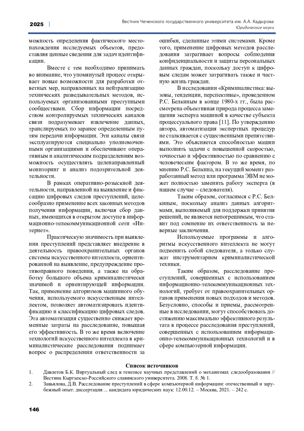 ДАШИН А. В., УСЕНКО А. С., КАУНОВ А. М. УГОЛОВНО-ПРОЦЕССУАЛЬНЫЕ И КРИМИНАЛИСТИЧЕСКИЕ АСПЕКТЫ РАССЛЕДОВАНИЯ ПРЕСТУПЛЕНИЙ, СОВЕРШЕННЫХ С ИСПОЛЬЗОВАНИЕМ ИНФОРМАЦИОННО-ТЕЛЕКОММУНИКАЦИОННЫХ ТЕХНОЛОГИЙ И В СФЕРЕ КОМПЬЮТЕРНОЙ ИНФОРМАЦИИ // ВЕСТНИК ЧЕЧЕНСКОГО ГОСУДАРСТВЕННОГО УНИВЕРСИТЕТА ИМ. А. А. КАДЫРОВА. 2025. № 1 (57)