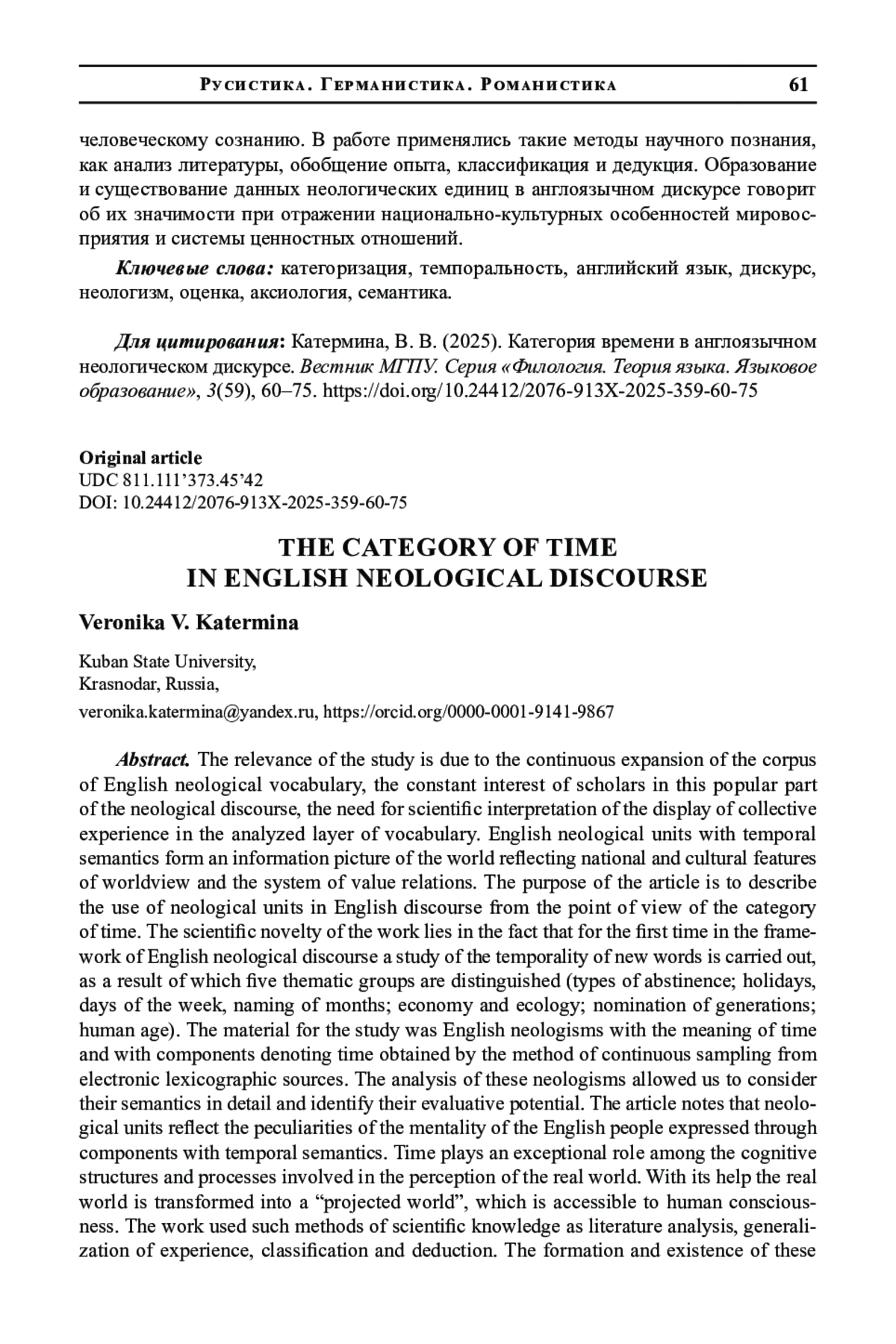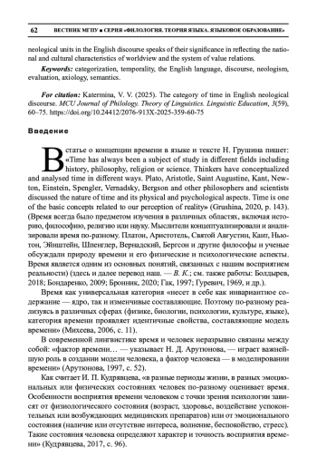 3. Бондаренко, Е. В. (2009). Категория “время” как параметр изучения языковой системы. ВестникРУДН. Серия: Вопросы образования: языки и специальность, (2), 34-38.