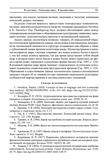 1. Grushina, Natalia. (2020). Concept of time in language and text (contextual time markers). JfiZYKOZNA WSTWO, 1(14), 143-149. DOI: 10.25312/2391-5137.14/2020_09ng