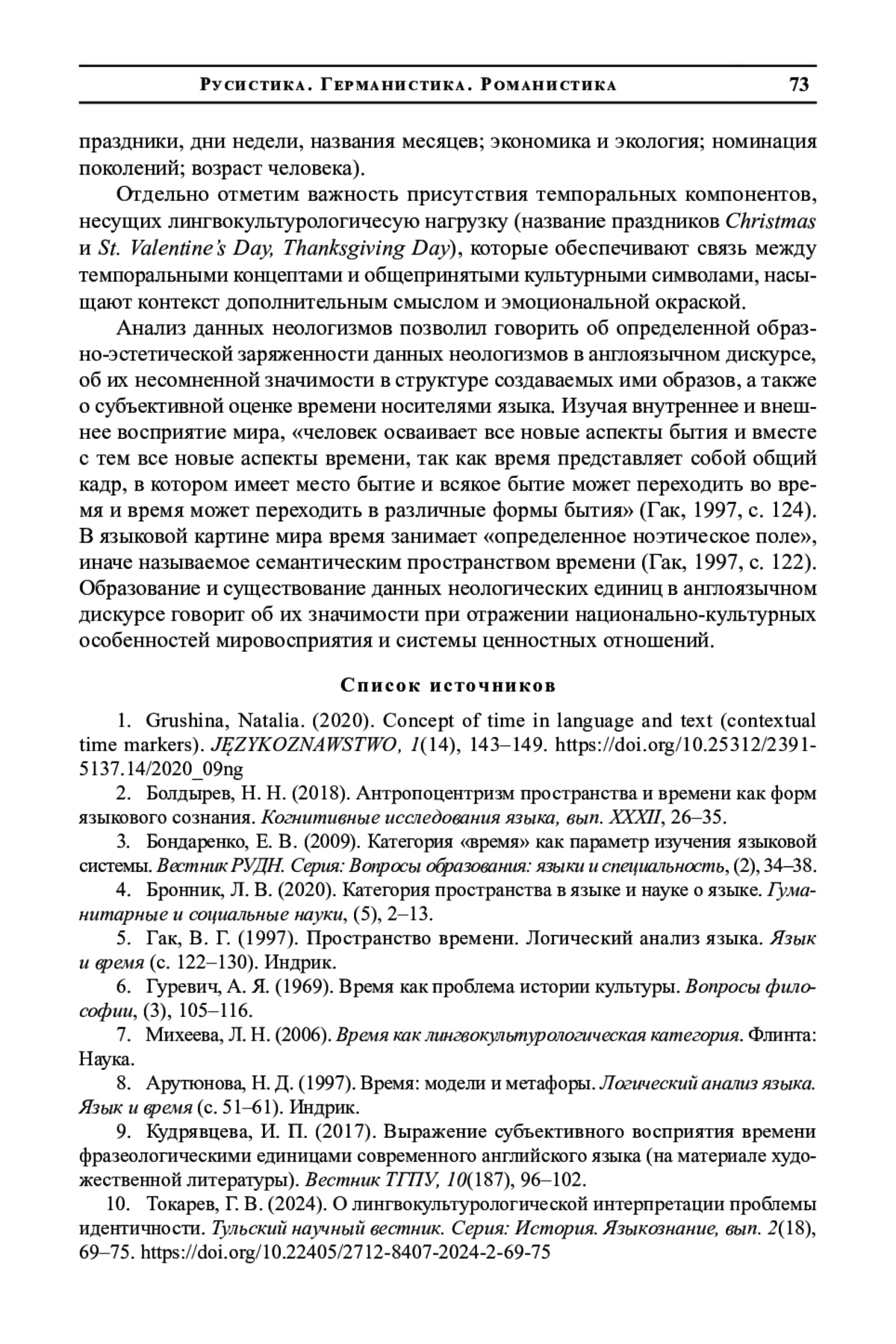 5. Гак, В. Г. (1997). Пространство времени. Логический анализ языка. Язык и время (с. 122-130). Индрик.