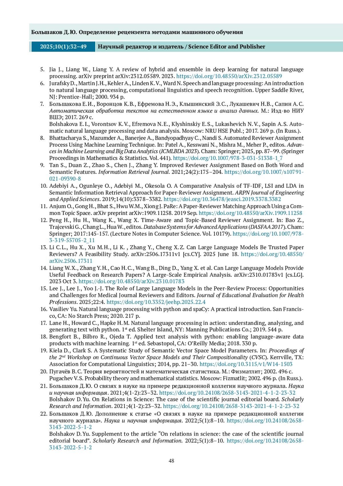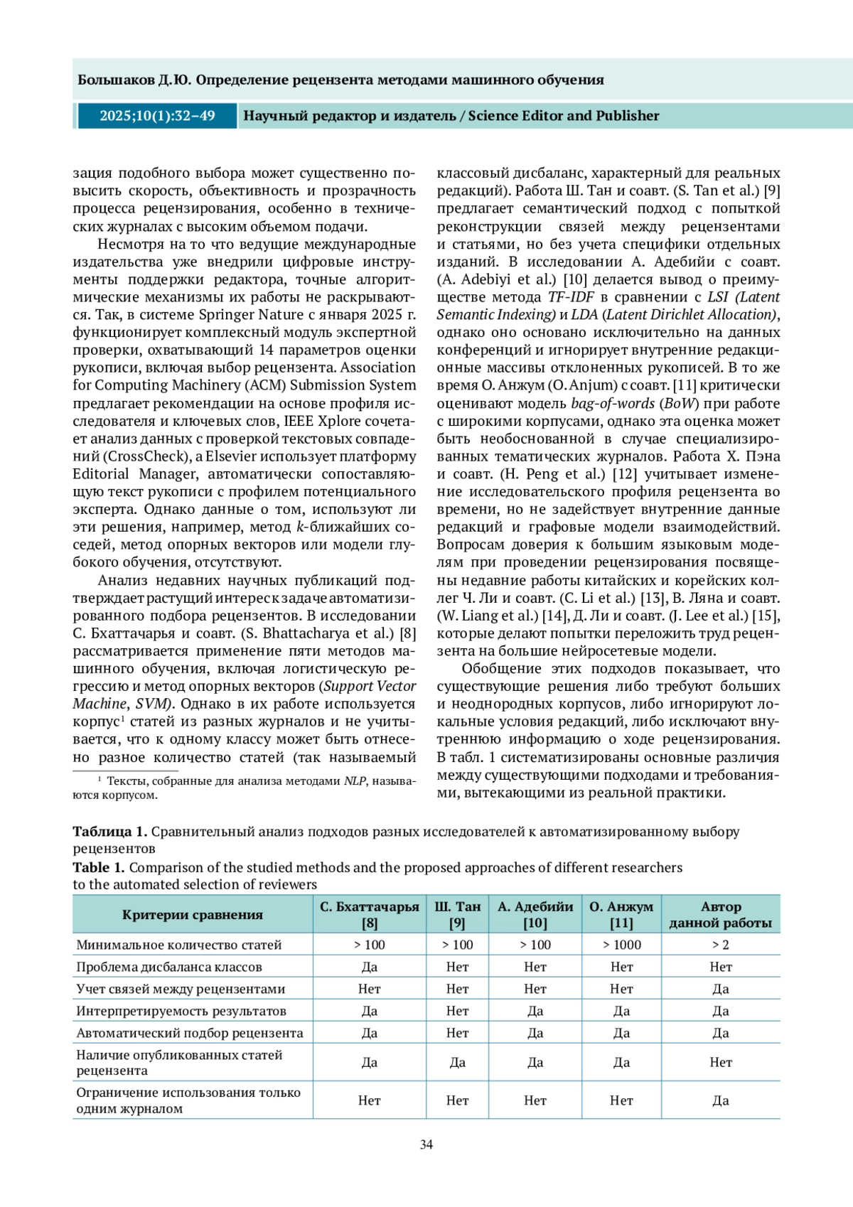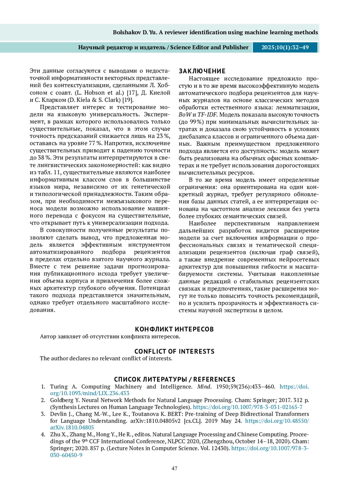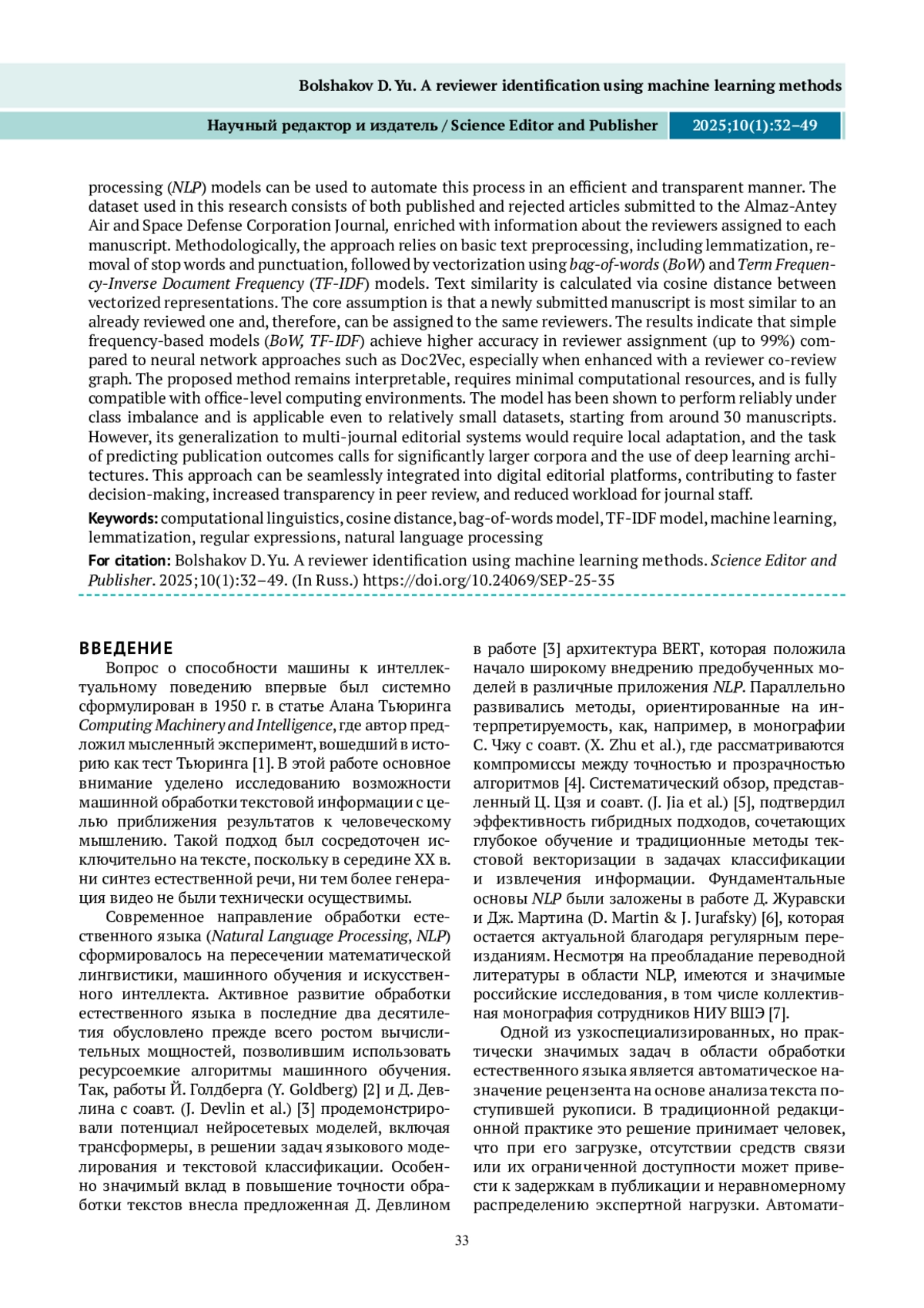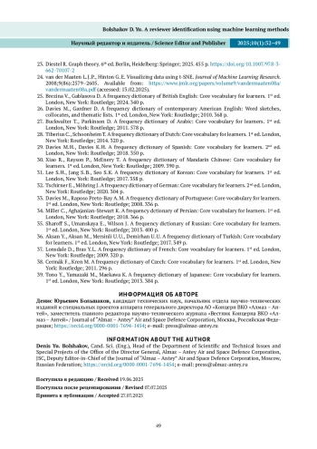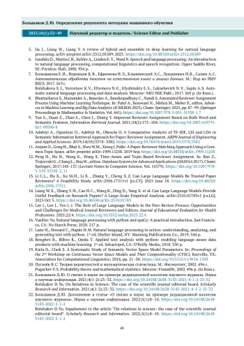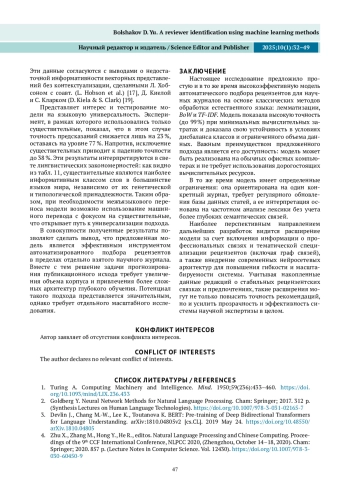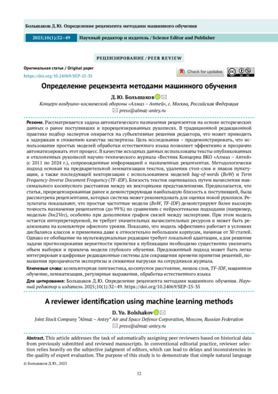 БОЛЬШАКОВ Д. Ю. ОПРЕДЕЛЕНИЕ РЕЦЕНЗЕНТА МЕТОДАМИ МАШИННОГО ОБУЧЕНИЯ // НАУЧНЫЙ РЕДАКТОР И ИЗДАТЕЛЬ. 2025. № 1, ТОМ 10