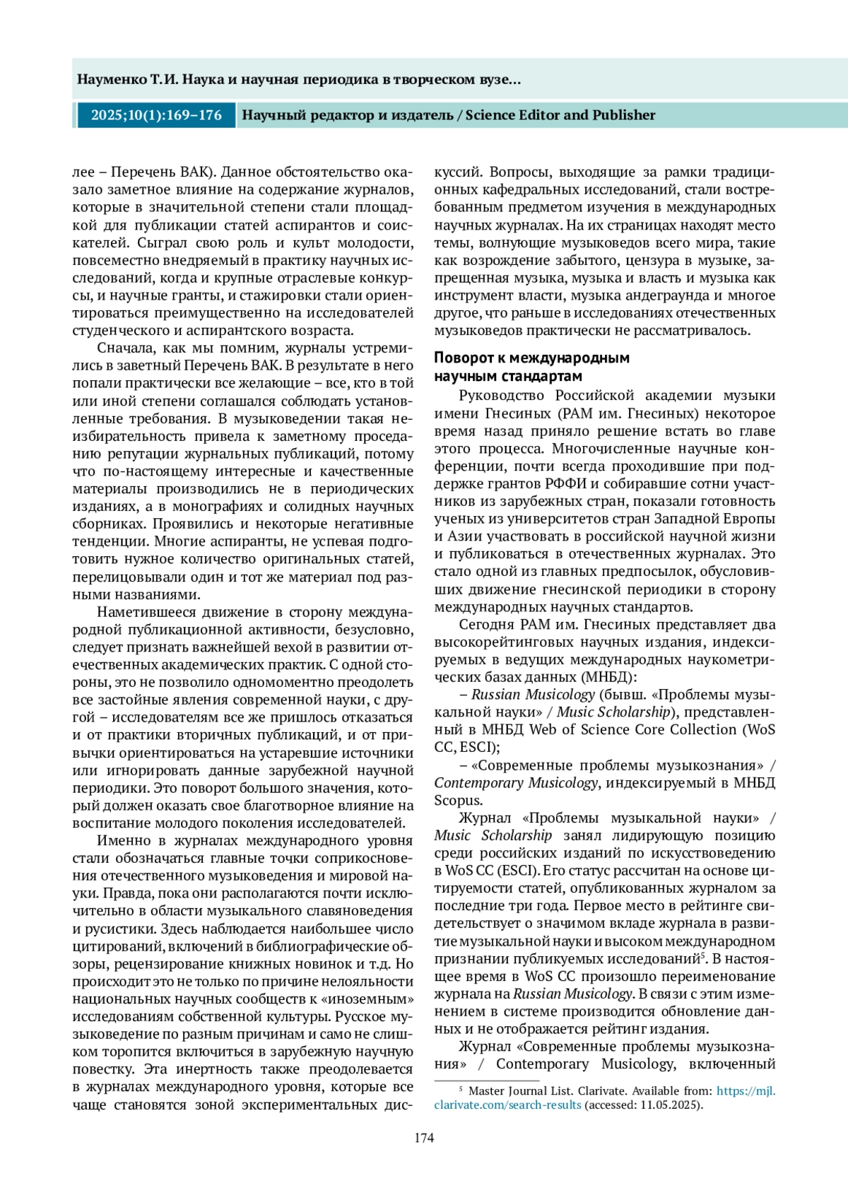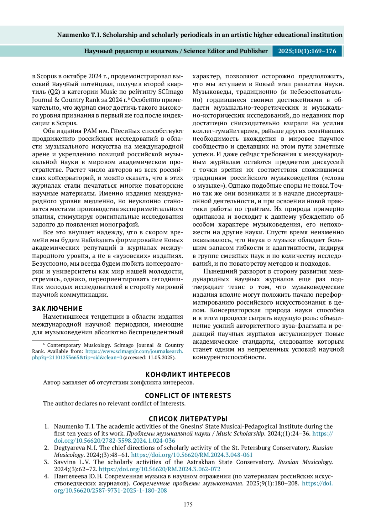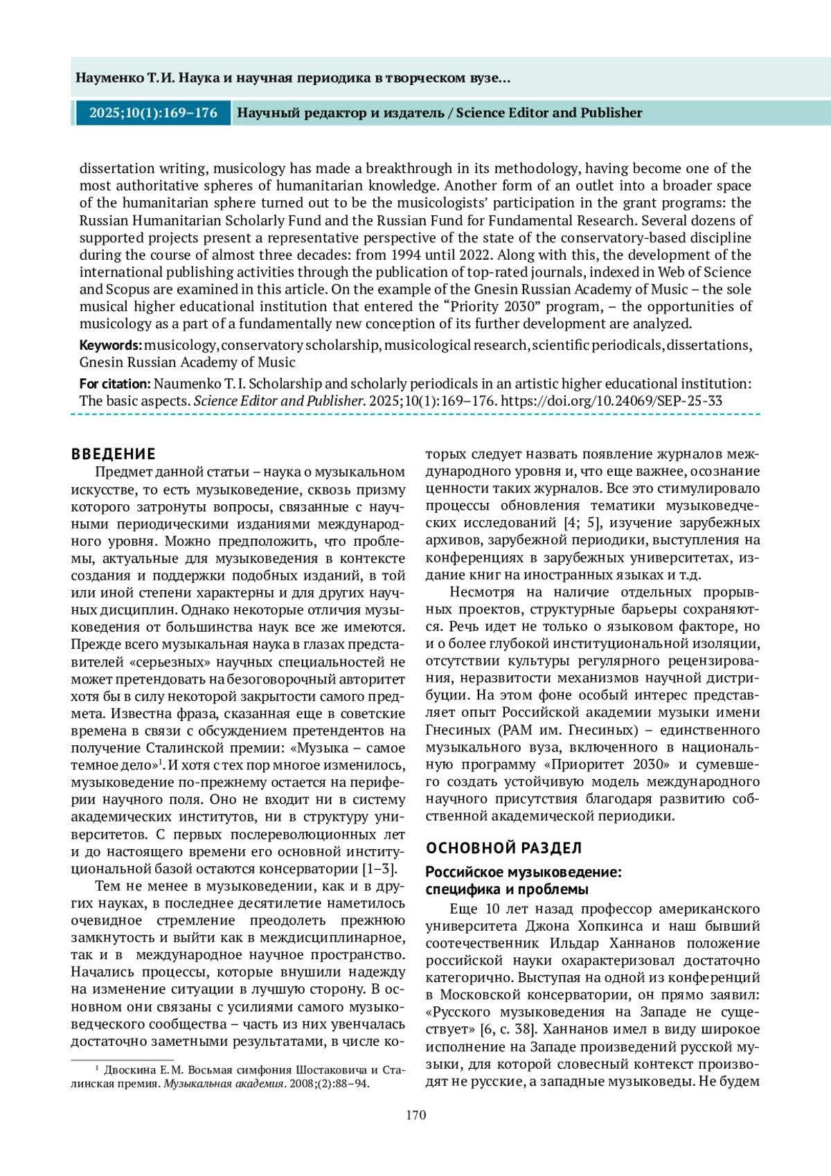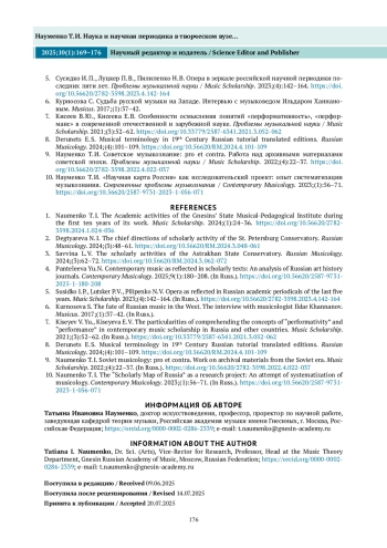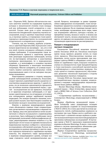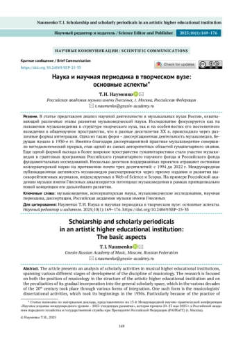 НАУМЕНКО Т. И. НАУКА И НАУЧНАЯ ПЕРИОДИКА В ТВОРЧЕСКОМ ВУЗЕ: ОСНОВНЫЕ АСПЕКТЫ* // НАУЧНЫЙ РЕДАКТОР И ИЗДАТЕЛЬ. 2025. № 1, ТОМ 10