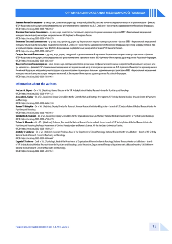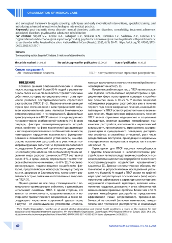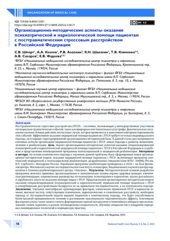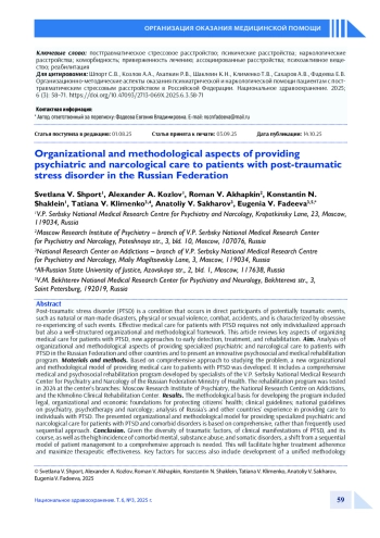 Статья: Организационно-методические аспекты оказания психиатрической и наркологической помощи пациентам с посттравматическим стрессовым расстройством в Российской Федерации (2025)