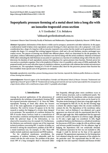 11. Т. А. Белякова, И. А. Гончаров, Влияние микроструктуры металлического сплава на распределение толщины в круглой пластине при сверхпластической формовке давлением, Вестн. СамУ, Естественнонаучн. сер. 26, 2 (2020) 50 - 62. DOI: 10.18287/2541-7525-2020-26-2-50-62