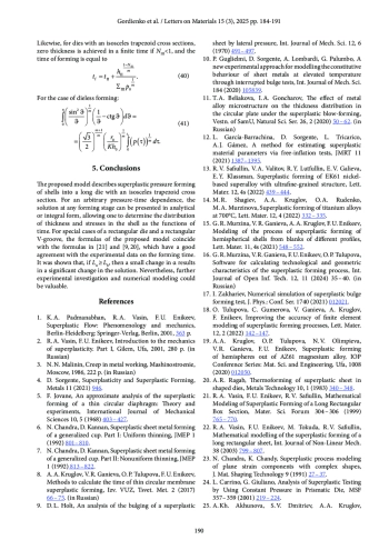 22. R. A. Vasin, F. U. Enikeev, M. Tokuda, R. V. Safiullin, Mathematical modelling of the superplastic forming of a long rectangular sheet, Int. Journal of Non-Linear Mech. 38 (2003) 799 - 807. DOI: 10.1016/S0020-7462(01)00134-2