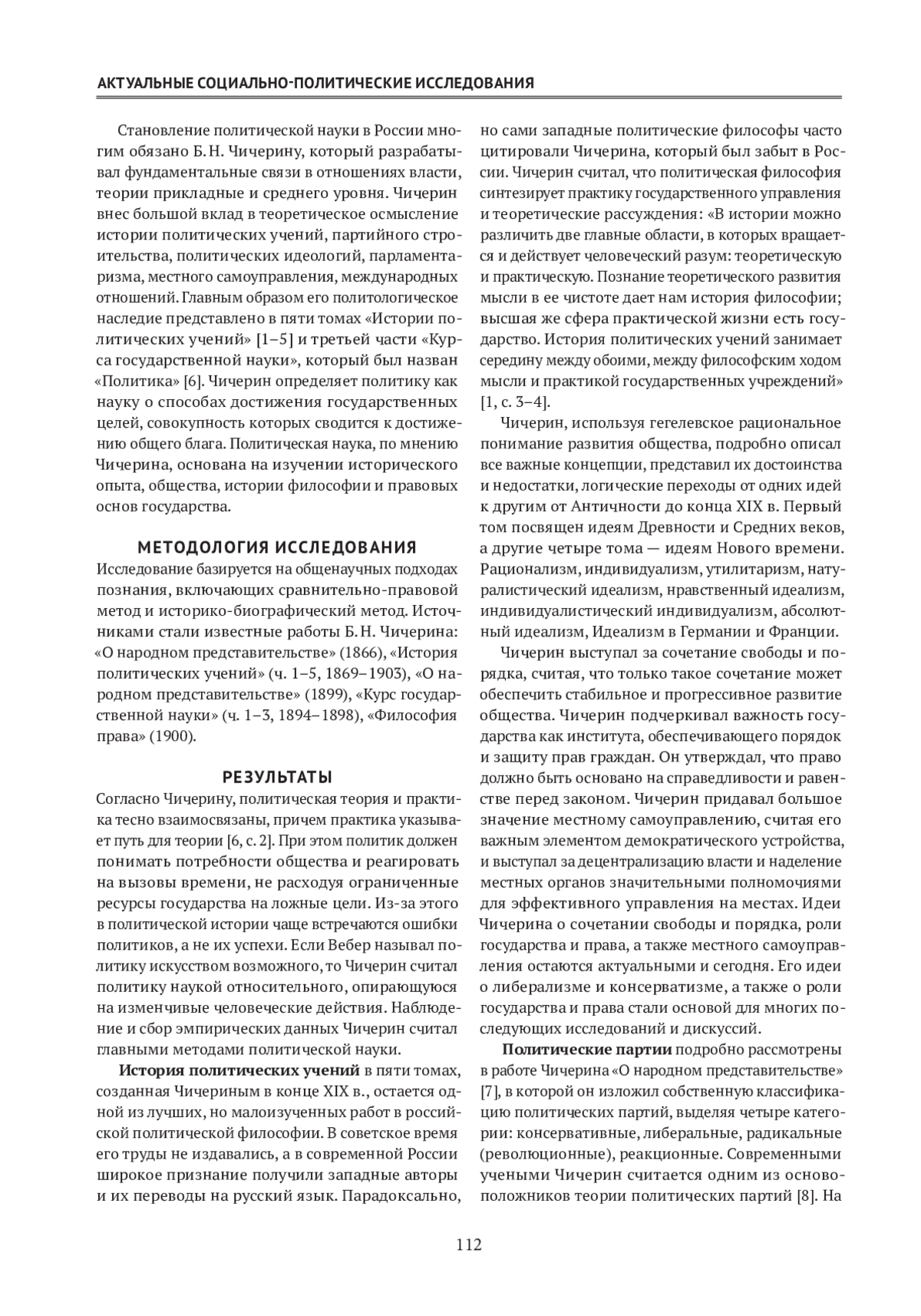 Статья: Ценность ревизии идей Б. Н. Чичерина для российской политической науки (2025)