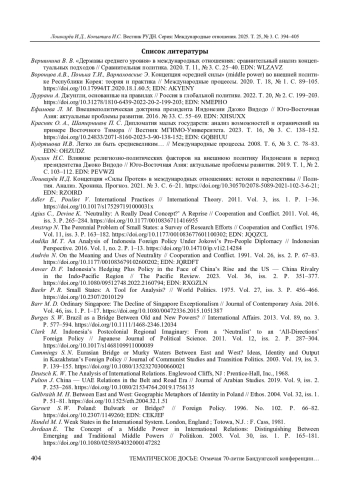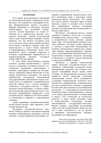 Статья: ГОСУДАРСТВА-«МОСТЫ» В МЕЖДУНАРОДНЫХ ОТНОШЕНИЯХ НА ПРИМЕРЕ СИНГАПУРА И ИНДОНЕЗИИ (2025)