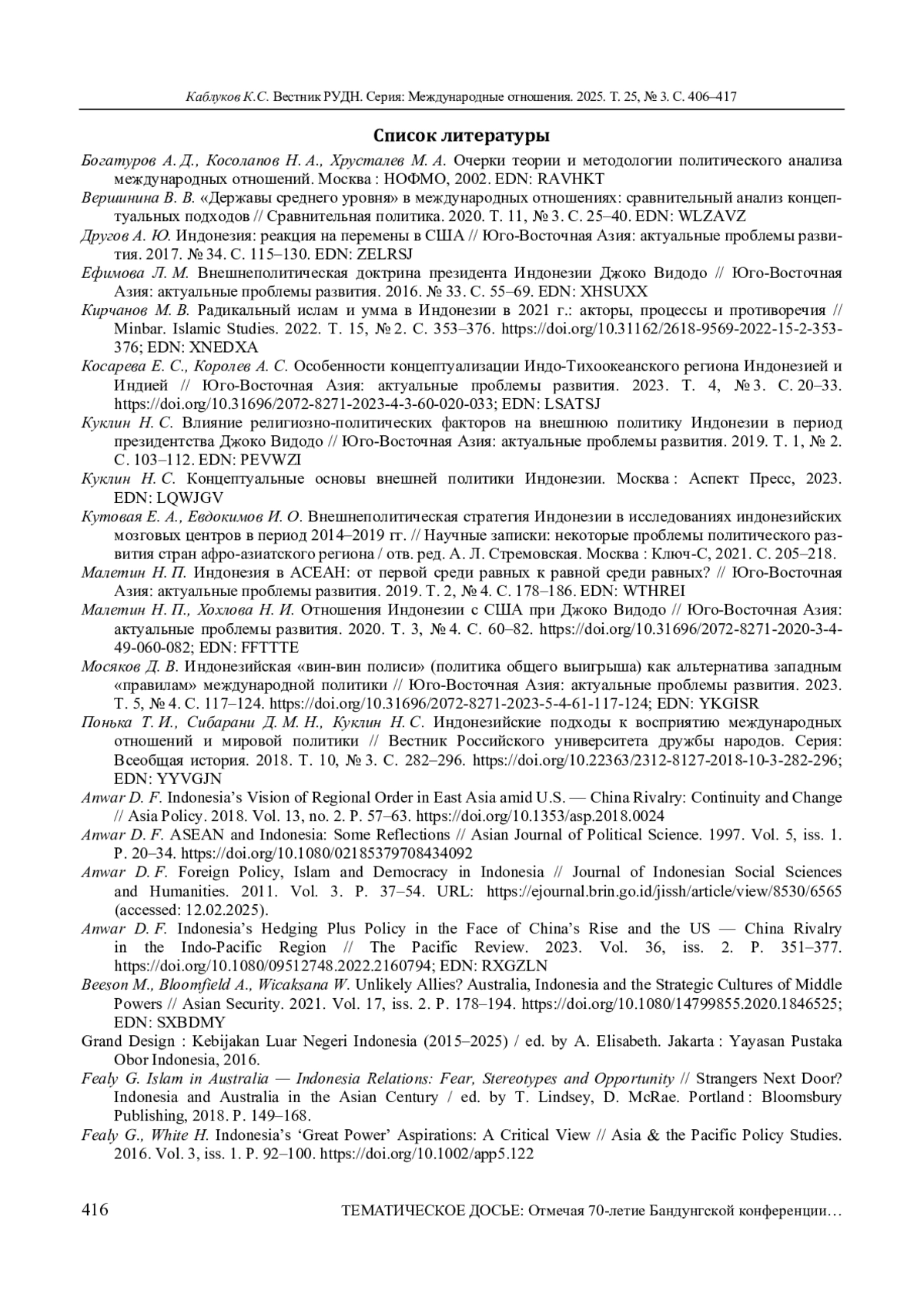 8. Куклин Н. С. Концептуальные основы внешней политики Индонезии. Москва: Аспект Пресс, 2023. EDN: LQWJGV