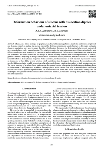 7. L. R. Safina, K. A. Krylova, R. T. Murzaev, Graphene-coated Ni: mechanical properties, Lett. Mater. 14 (2) (2024) 99 -105. DOI: 10.48612/letters/2024-2-99-105
