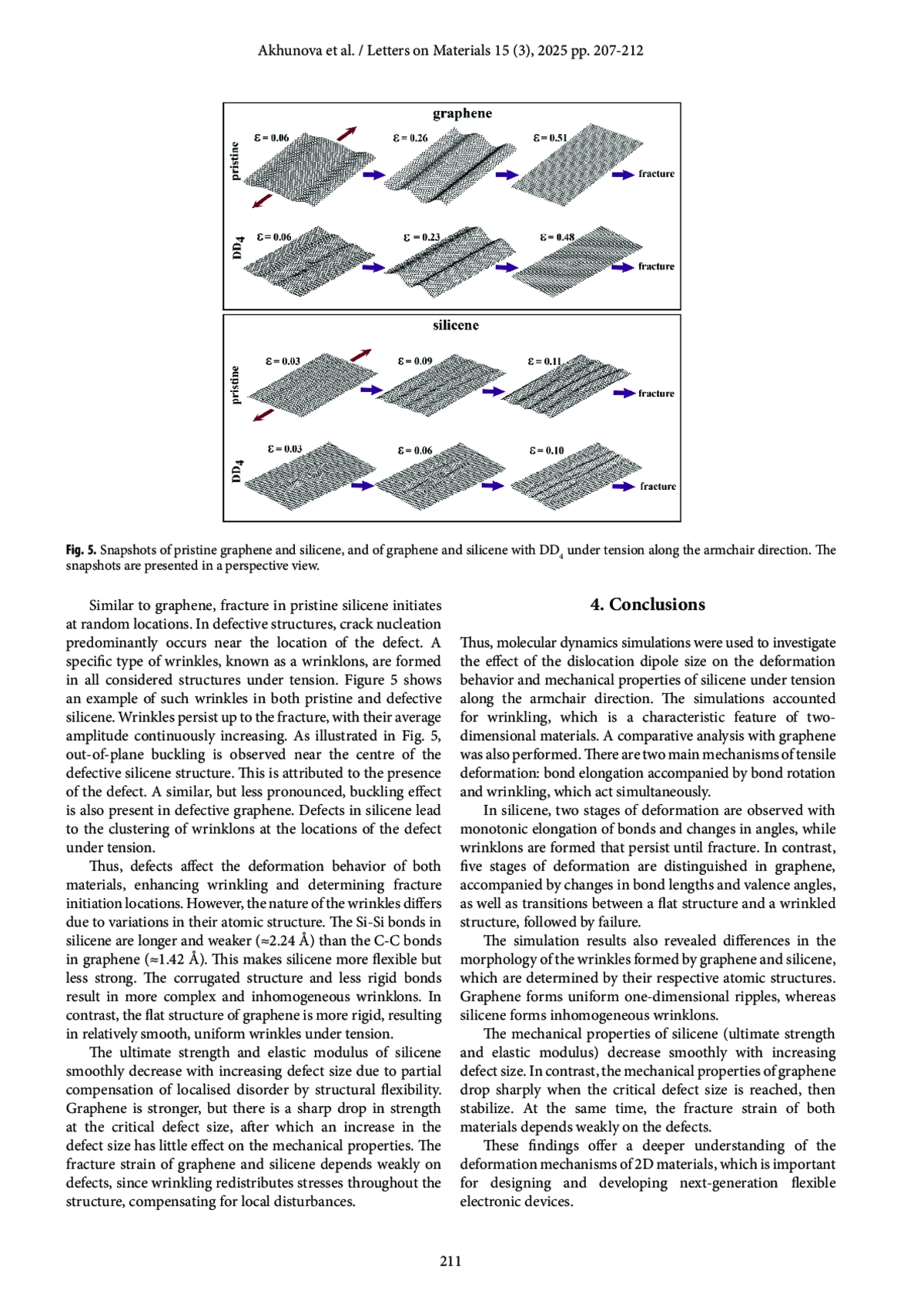 24. A. K. Akhunova, R. T. Murzaev, J. A. Baimova, Graphene with dislocation dipoles: Wrinkling and defect nucleation during tension, Computational Materials Science 244 (2024) 113230. DOI: 10.1016/j.commatsci.2024.113230