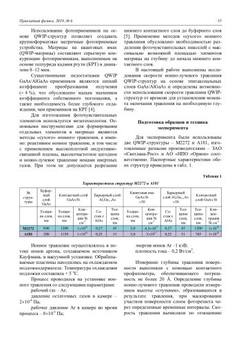 Трухачев А. В., Седнев М. В., Трухачева Н. С., Болтарь К. О., Дирочка А. И. Исследование глубины и скорости ионного травления QWIP-структур 54