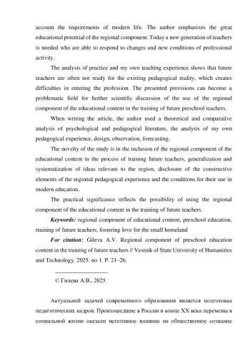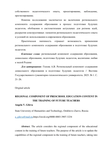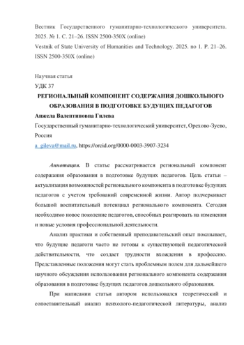 1. Гилева А.В., Байдерина Н.Б., Рузанкина Ж.В. Дошкольная педагогика: проектирование региональных образовательных программ: учебно-методическое пособие для бакалавриата и магистратуры. Казань: Бук, 2021. 187 с. EDN: IHAAIH