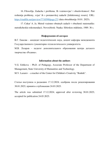 17. Цукарь А.Я. Метод взаимно обратных задач в обучении математике: методические рекомендации. Новосибирск: Наука: Сибирское отделение, 1989. 36 с.