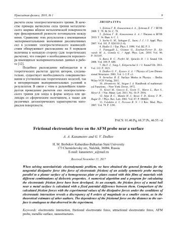 КАНАМЕТОВ А. А., ДЕДКОВ Г. В. СИЛА ЭЛЕКТРОСТАТИЧЕСКОГО ТРЕНИЯ ЗОНДА АТОМНО-СИЛОВОГО МИКРОСКОПА ВБЛИЗИ ПОВЕРХНОСТИ // ПРИКЛАДНАЯ ФИЗИКА. 2018. №1