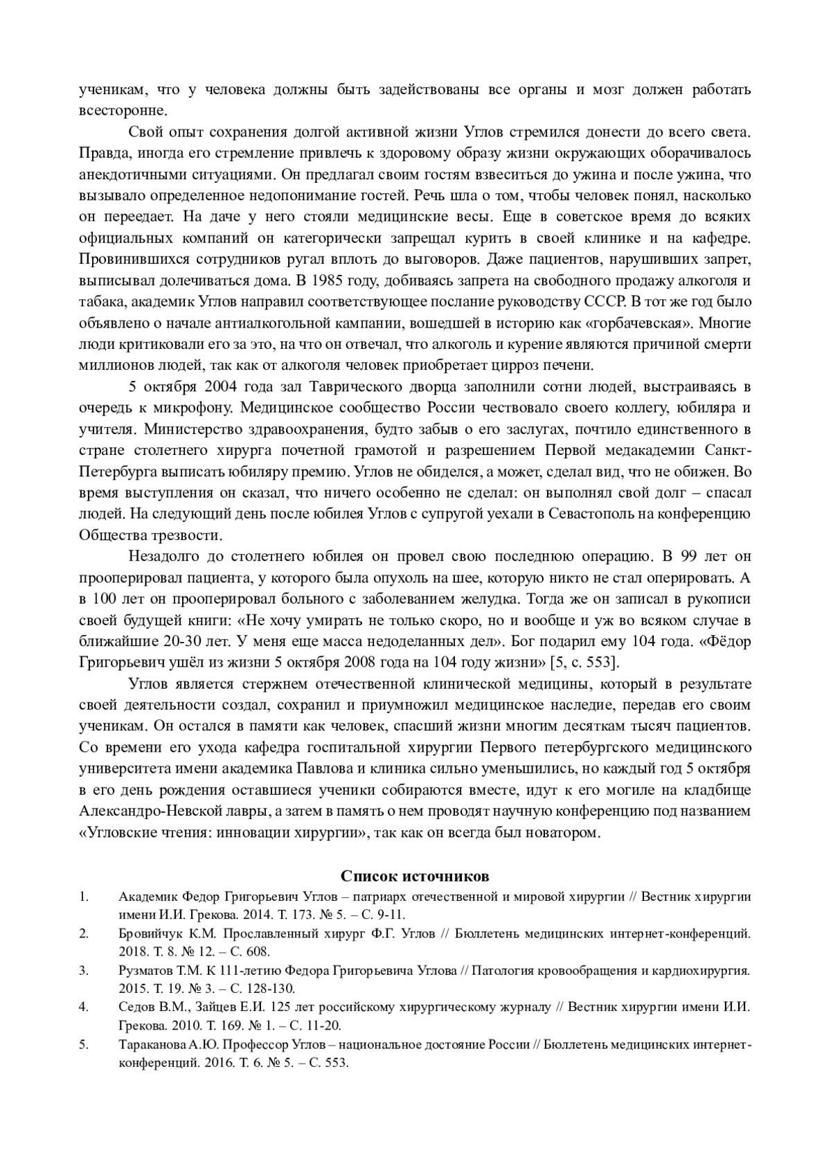 5. Тараканова А.Ю. Профессор Углов - национальное достояние России // Бюллетень медицинских интернет-конференций. 2016. Т. 6. № 5. - С. 553. EDN: XCYTZB
