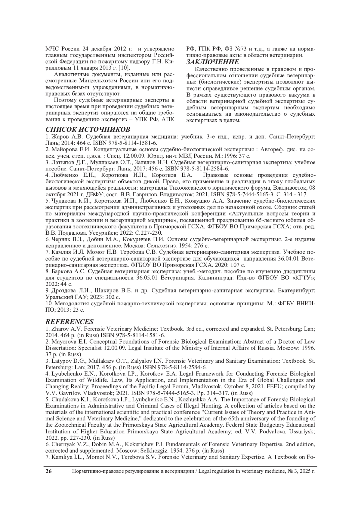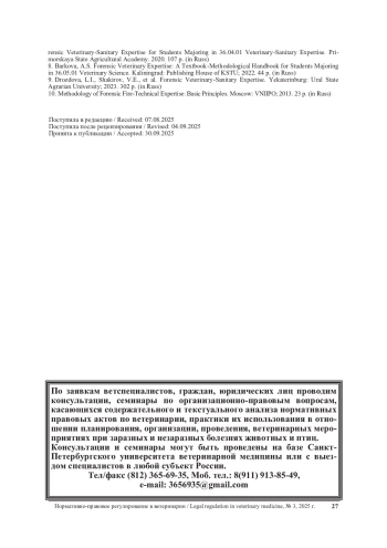 9. Дроздова Л.И., Шакиров В.Е. и др. Судебная ветеринарно-санитарная экспертиза. Екатеринбург: Уральский ГАУ; 2023: 302 с.