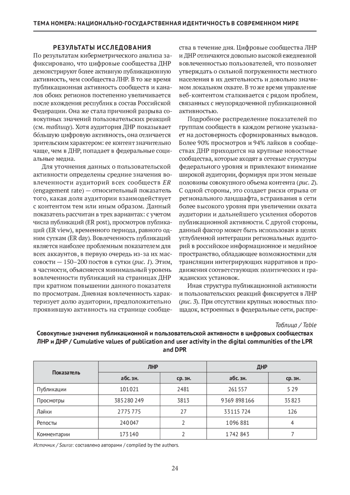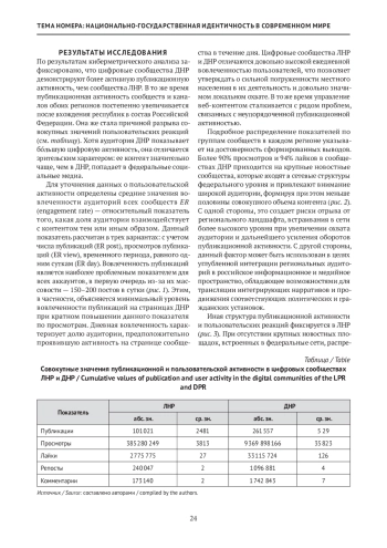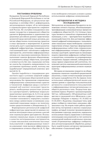 Статья: Оценка эффективности технологий цифровых коммуникаций для интеграции жителей ЛНР и ДНР в социокультурное пространство России (2024)