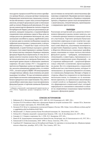 2. Лизунов П. В. Российское общество и фондовая биржа во второй половине XIX - начале XX в. Экономическая история: ежегодник. М.: РОССПЭН; 2005.