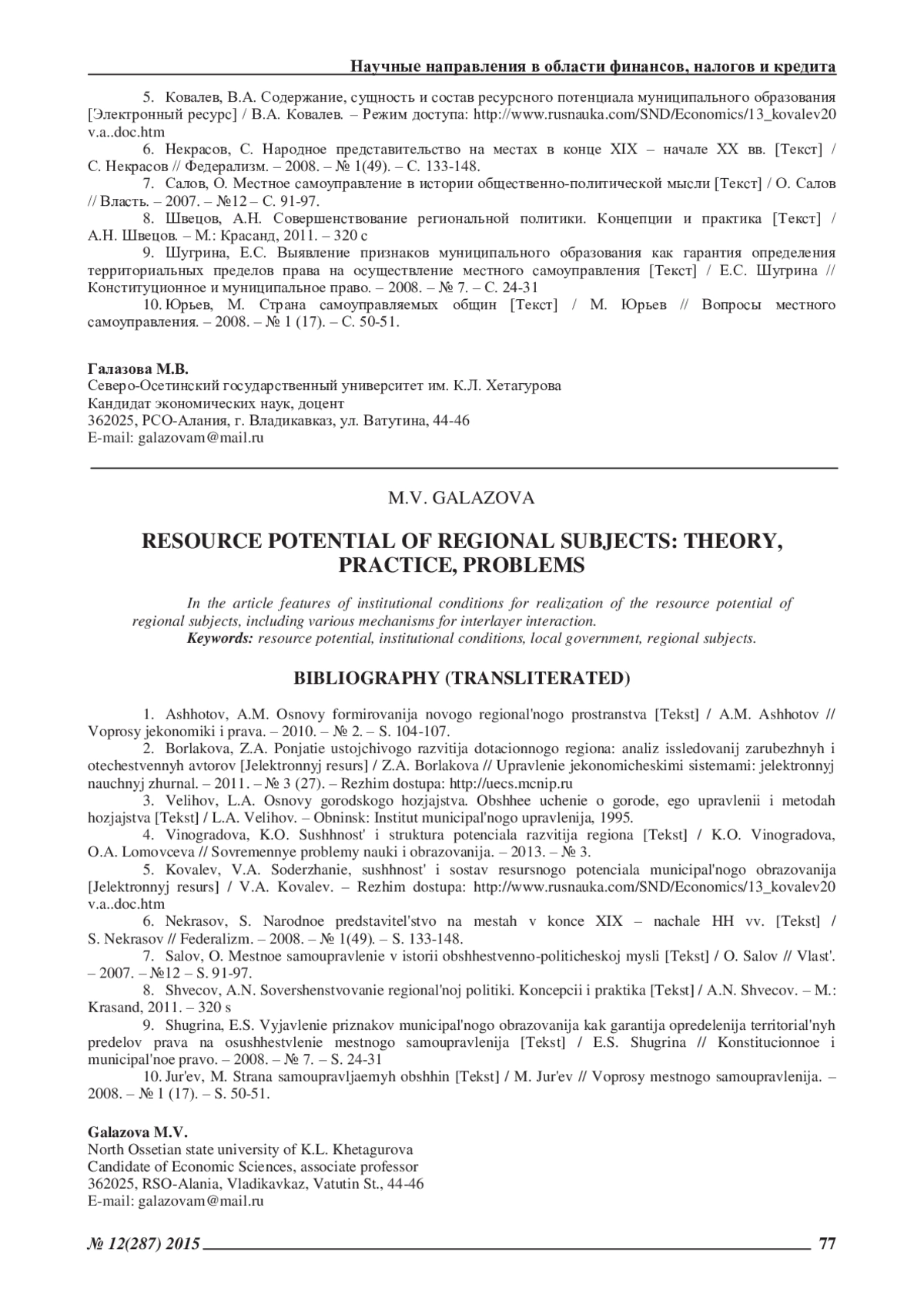 5. Ковалев, В.А. Содержание, сущность и состав ресурсного потенциала муниципального образования [Электронный ресурс] / В.А. Ковалев. - Режим доступа: http://www.rusnauka.com/SND/Economics/13_kovalev20 v.a.doc.htm.