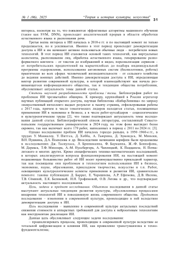 Статья: ДЕМОКРАТИЗАЦИЯ ДОСТУПА К ИСКУССТВЕННОМУ ИНТЕЛЛЕКТУ КАК ВЕКТОР РАЗВИТИЯ СОВРЕМЕННОЙ КУЛЬТУРЫ: ПРОБЛЕМЫ, ТЕНДЕНЦИИ И ПЕРСПЕКТИВЫ (2025)