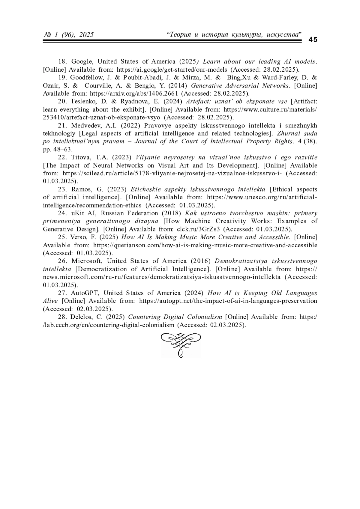 Ключевые фразы: искусственный интеллект, технофундаментализм, ТРАНСГУМАНИЗМ, глобализация, стандартизация, КРЕАТИВНЫЕ ИНДУСТРИИ, общество потребления, культурное разнообразие, СОЦИОКУЛЬТУРНАЯ ИДЕНТИЧНОСТЬ