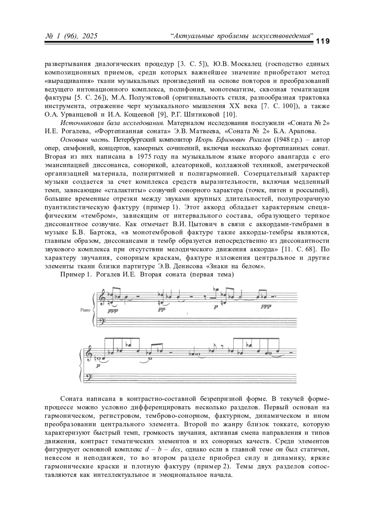 Статья: ОДНОЧАСТНЫЕ СОНАТЫ ПЕТЕРБУРГСКИХ КОМПОЗИТОРОВ И. Е. РОГАЛЕВА, Э. Е. МАТВЕЕВА, Б. А. АРАПОВА: ОБРАЗНО-ДРАМАТУРГИЧЕСКИЕ И КОМПОЗИЦИОННЫЕ АСПЕКТЫ (2025)