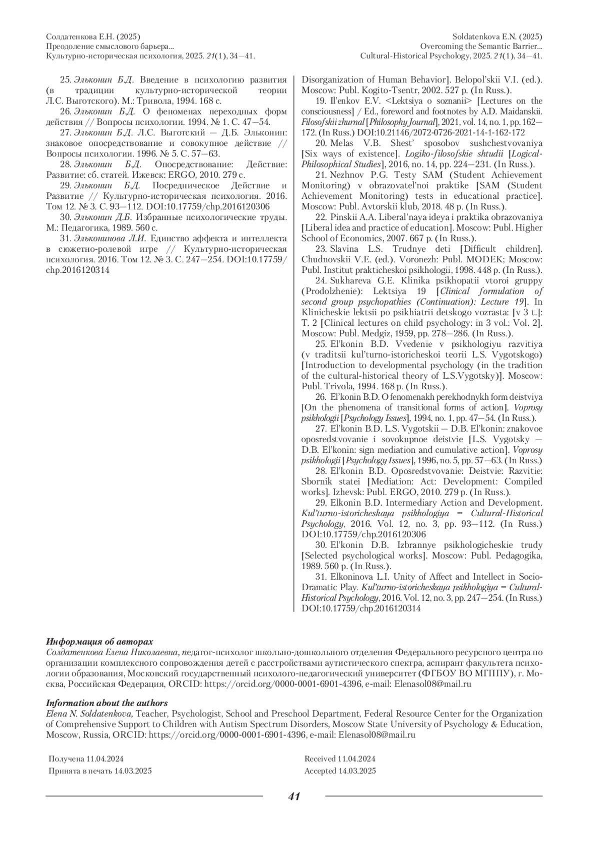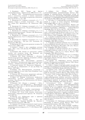 27. Эльконин Б.Д. Л.С. Выготский - Д.Б. Эльконин: знаковое опосредствование и совокупное действие // Вопросы психологии. 1996. № 5. С. 57-63.