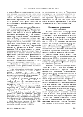 Статья: ТРАНСГРАНИЧНОЕ ВЗАИМОДЕЙСТВИЕ АФГАНИСТАНА И ШАНХАЙСКОЙ ОРГАНИЗАЦИИ СОТРУДНИЧЕСТВА ПОСЛЕ ВЫВОДА ВОЙСК США ИЗ АФГАНИСТАНА (2024)
