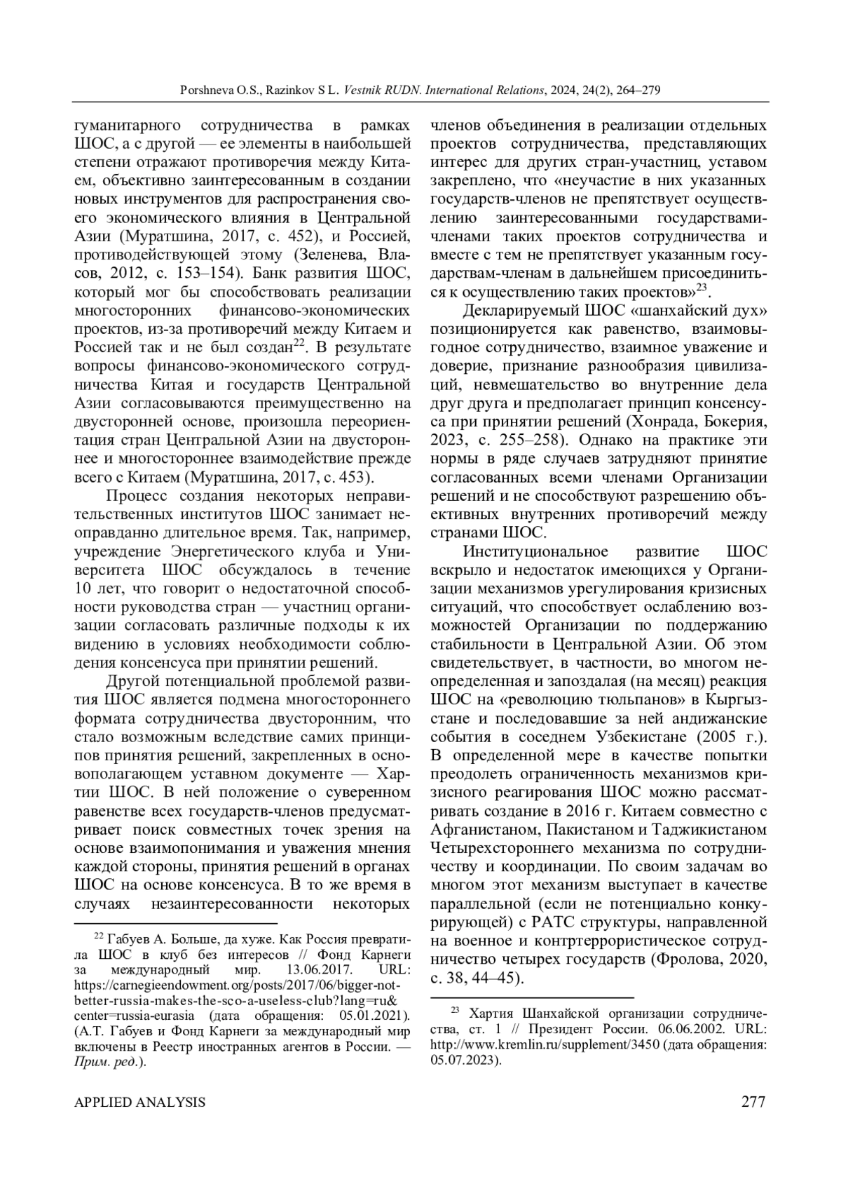 22. The Shanghai Cooperation Organization: Exploring New Horizons / ed. by S. Marochkin, Y. Bezborodov. London: Routledge, 2022. DOI: 10.4324/9781003170617