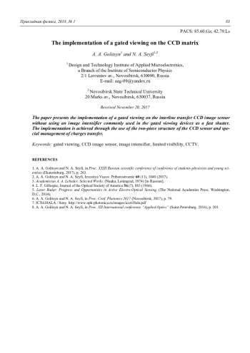 ГОЛИЦЫН А. А., СЕЙФИ Н. А. РЕАЛИЗАЦИЯ АКТИВНО-ИМПУЛЬСНОГО РЕЖИМА НА ПЗС-МАТРИЦЕ // ПРИКЛАДНАЯ ФИЗИКА. 2018. №1