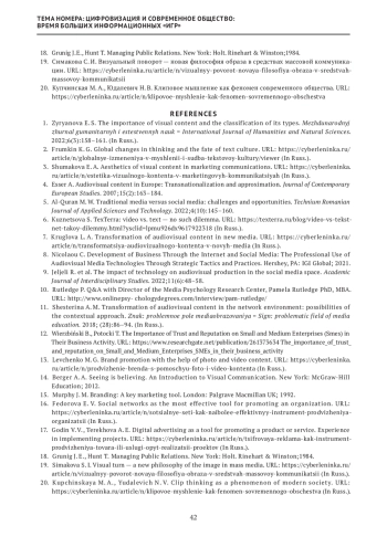 20. Купчинская М. А., Юдалевич Н. В. Клиповое мышление как феномен современного общества. URL: https://cyberleninka.ru/article/n/klipovoe-myshlenie-kak-fenomen-sovremennogo-obschestva