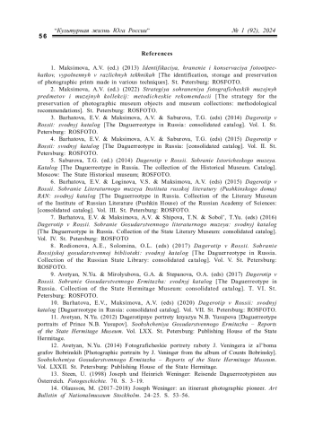 2. Стратегия сохранения фотографических музейных предметов и музейных коллекций: методические рекомендации / сост. А.В. Максимова [и др.]. СПб.: РОСФОТО, 2022. 64 с.
