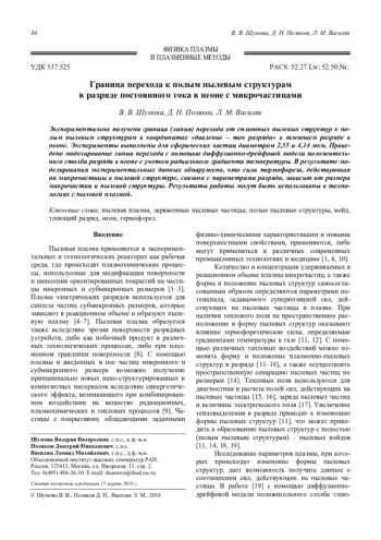 6. Boufendi L., Jouanny M. Ch., Kovacevic E., Berndt J., Mikikian M. // J. Phys. D: Appl. Phys. 2011. Vol. 44. P. 174035.