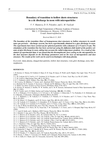 V. V. Shumova, D. N. Polyakov, and L. M. Vasilyak Boundary of transition to hollow dusts structures in a dc discharge in neon with microparticles 36