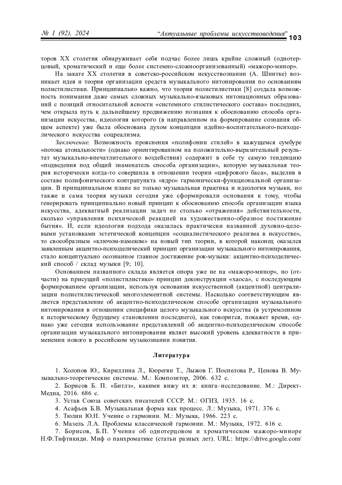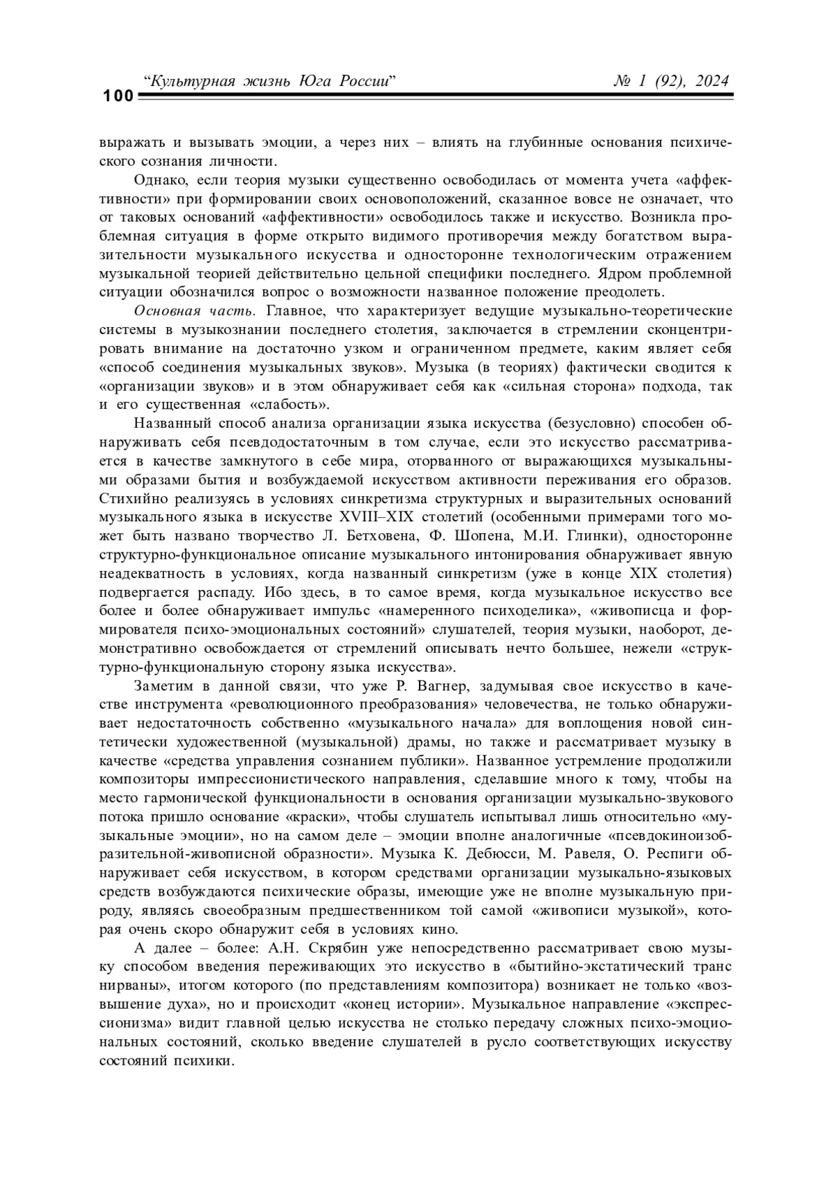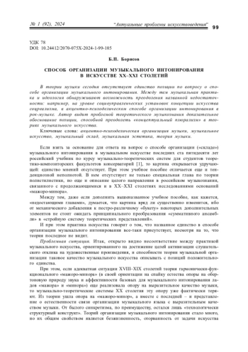 БОРИСОВ Б. П. СПОСОБ ОРГАНИЗАЦИИ МУЗЫКАЛЬНОГО ИНТОНИРОВАНИЯ В ИСКУССТВЕ XX-XXI СТОЛЕТИЙ // КУЛЬТУРНАЯ ЖИЗНЬ ЮГА РОССИИ. 2024. № 1 (92)
