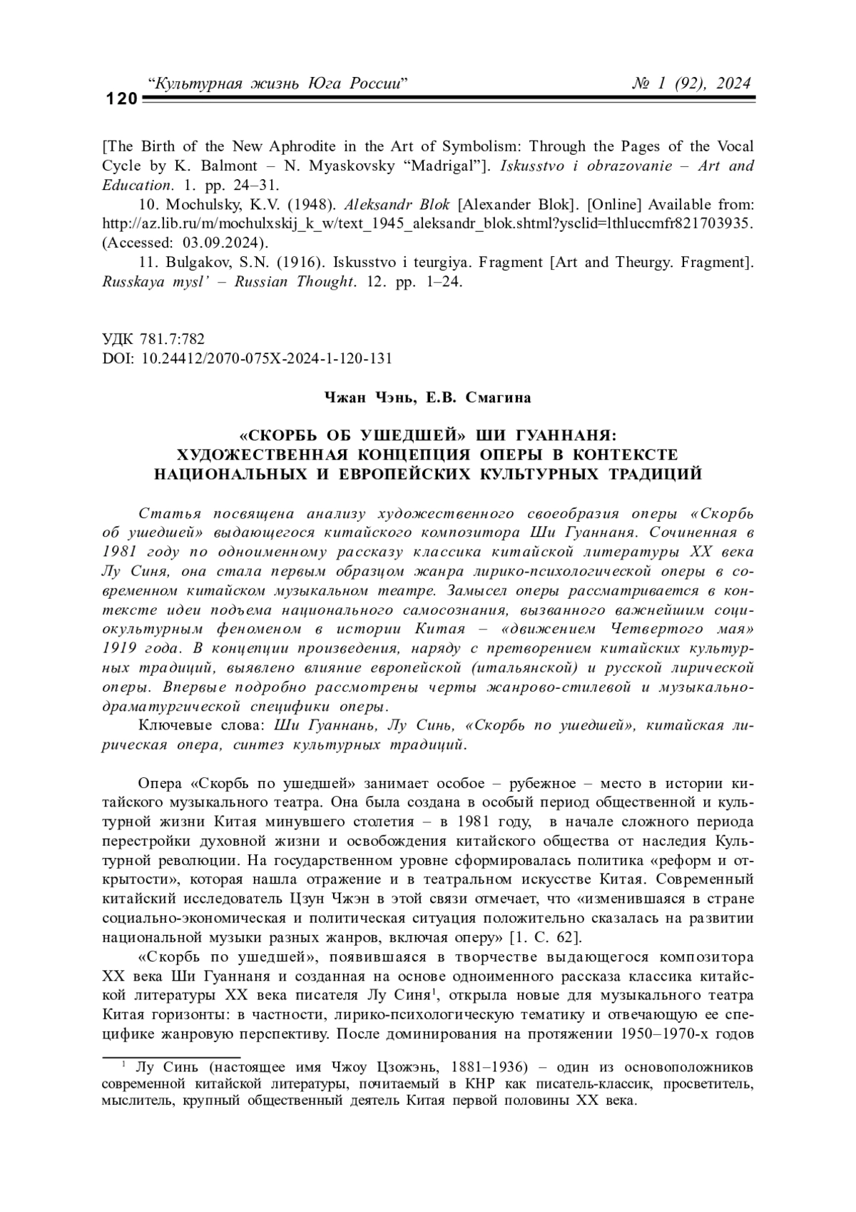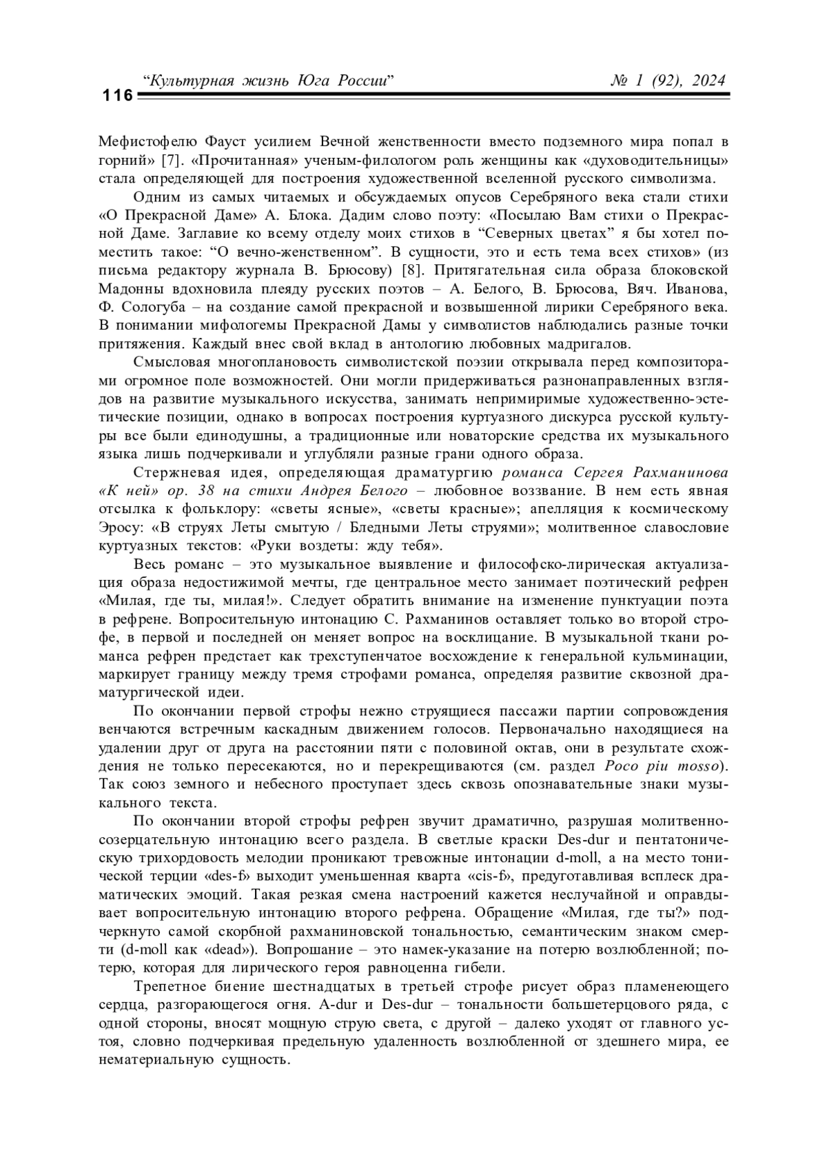 ШЭНЬ Т. ТОСКА ПО НЕДОСТИЖИМОМУ ИДЕАЛУ В СИМВОЛИСТСКИХ ТОНАХ: ОБРАЗ ДАЛЕКОЙ ВОЗЛЮБЛЕННОЙ В РОМАНСАХ ОР. 38 СЕРГЕЯ РАХМАНИНОВА // КУЛЬТУРНАЯ ЖИЗНЬ ЮГА РОССИИ. 2024. № 1 (92)