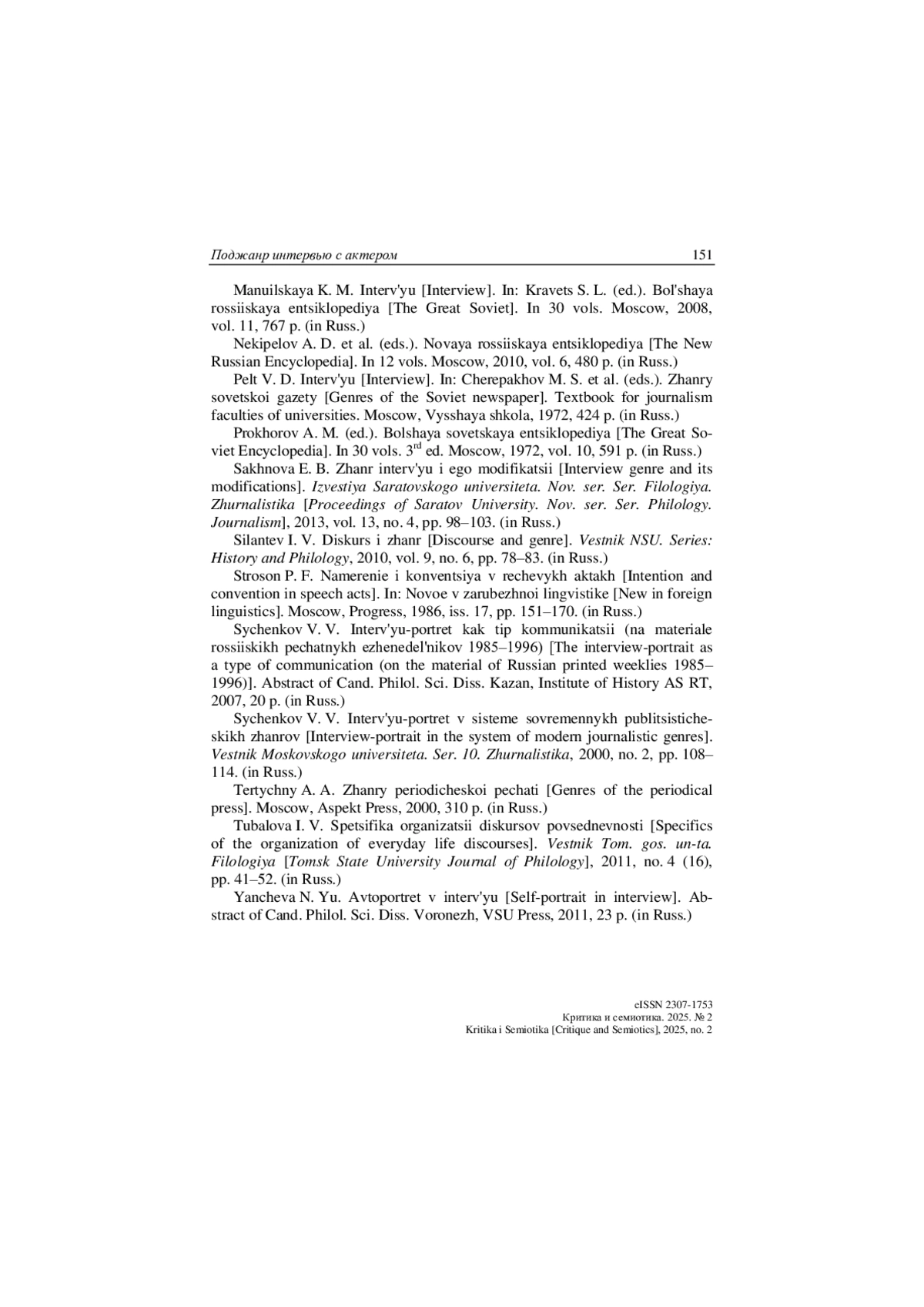 16. Сыченков В. В. Интервью-портрет в системе современных публицистических жанров // Вестник Моск. ун-та. Сер. 10. Журналистика. 2000. № 2. С. 108-114.