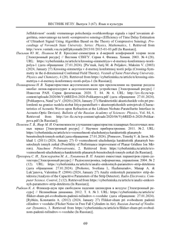 70. Поликарпова Н. В. Характеристики акустических волн при преломлении на границе раздела ниобат лития-парателлурит в акустооптических устройствах [Электронный ресурс] // Известия РАН. Серия физическая. 2020. Т. 84. № 6. URL: http://izv-fiz.ru/wp-content/uploads/2020/06/VybRED-6-2020-Polikarpova.pdf (дата обращения: 27.01.2024). EDN: WCGIKL