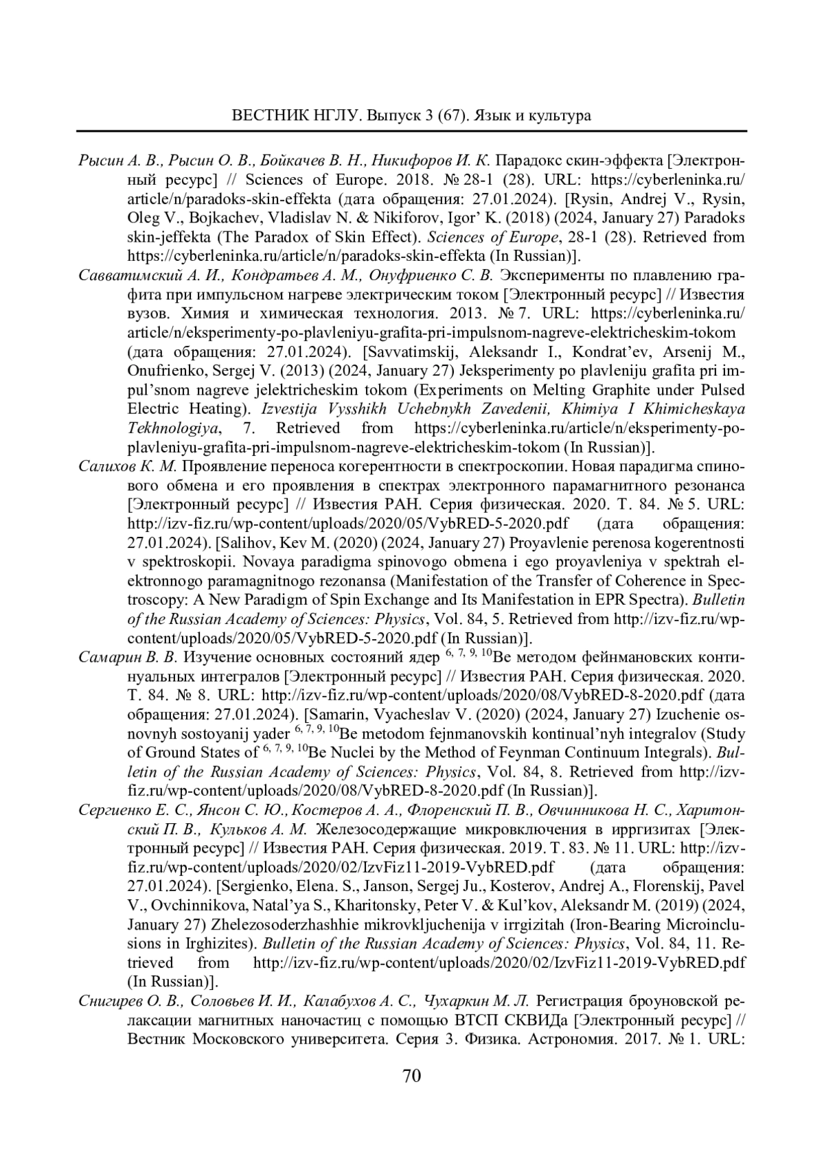 74. Рысин А. В., Рысин О. В., Бойкачев В. Н., Никифоров И. К. Парадокс скин-эффекта [Электронный ресурс] // Sciences of Europe. 2018. № 28-1 (28). URL: https://cyberleninka.ru/ article/n/paradoks-skin-effekta (дата обращения: 27.01.2024). EDN: UTXCSP