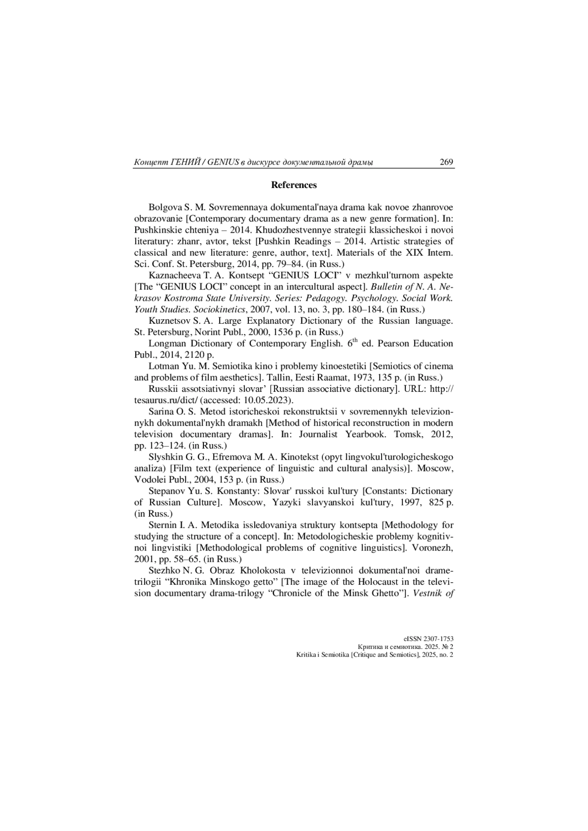 2. Казначеева Т. А. Концепт “GENIUS LOCI” в межкультурном аспекте // Вестник КГУ им. Н. А. Некрасова. Серия: Педагогика. Психология. Социальная работа. Ювенология. Социокинетика. 2007. Т. 13, № 3. С. 180-184.