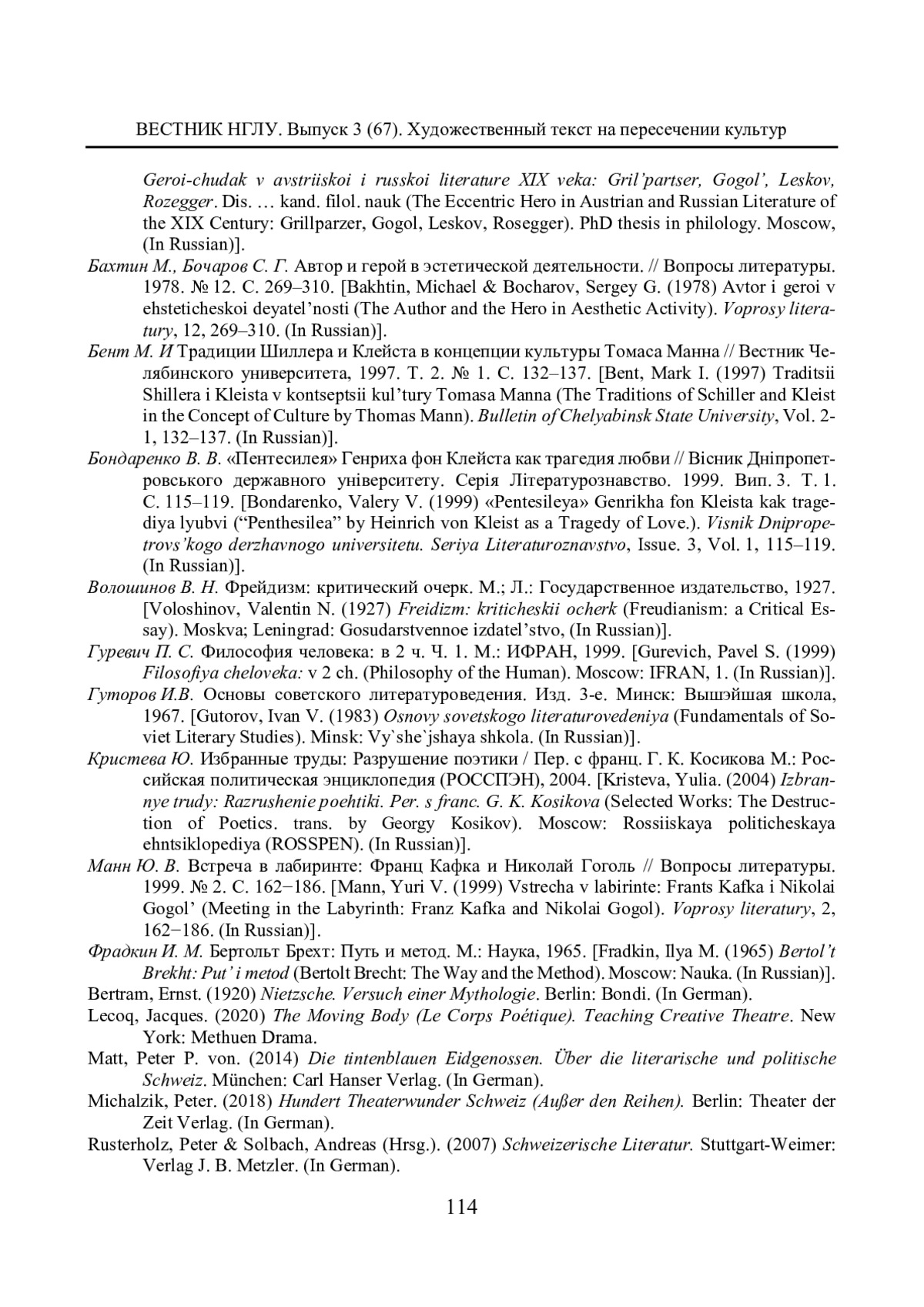 11. Манн Ю. В. Встреча в лабиринте: Франц Кафка и Николай Гоголь // Вопросы литературы. 1999. № 2. С. 162-186. EDN: RGDTKT