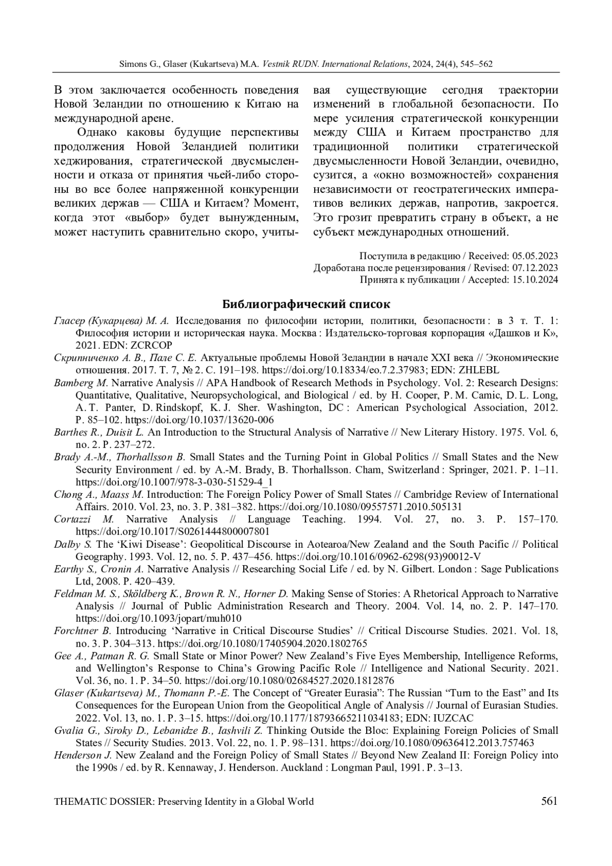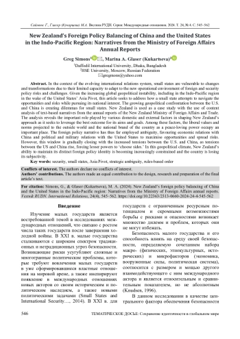 25. Smith N. R. New Zealand’s Grand Strategic Options as the Room for Hedging Continues to Shrink // Comparative Strategy. 2022. Vol. 41, no. 3. P. 314-327. DOI: 10.1080/01495933.2022.2057748 EDN: XHMAZU