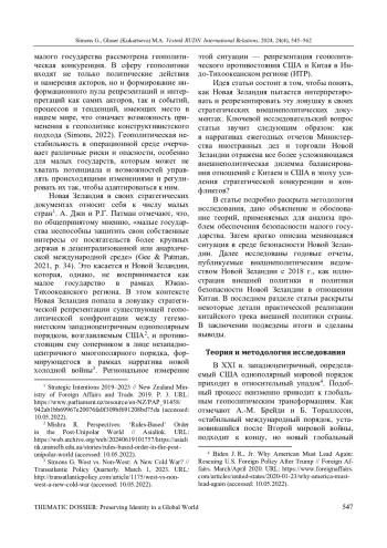 27. Steff R., Dodd-Parr F. Examining the Immanent Dilemma of Small States in the Asia-Pacific: The Strategic Triangle Between New Zealand, the US and China // The Pacific Review. 2019. Vol. 32, no. 1. P. 90-112. DOI: 10.1080/09512748.2017.1417324