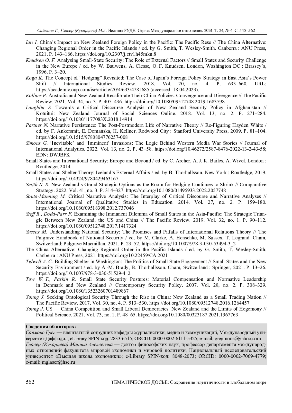 32. Young J. Seeking Ontological Security Through the Rise in China: New Zealand as a Small Trading Nation // The Pacific Review. 2017. Vol. 30, no. 4. P. 513-530. DOI: 10.1080/09512748.2016.1264457