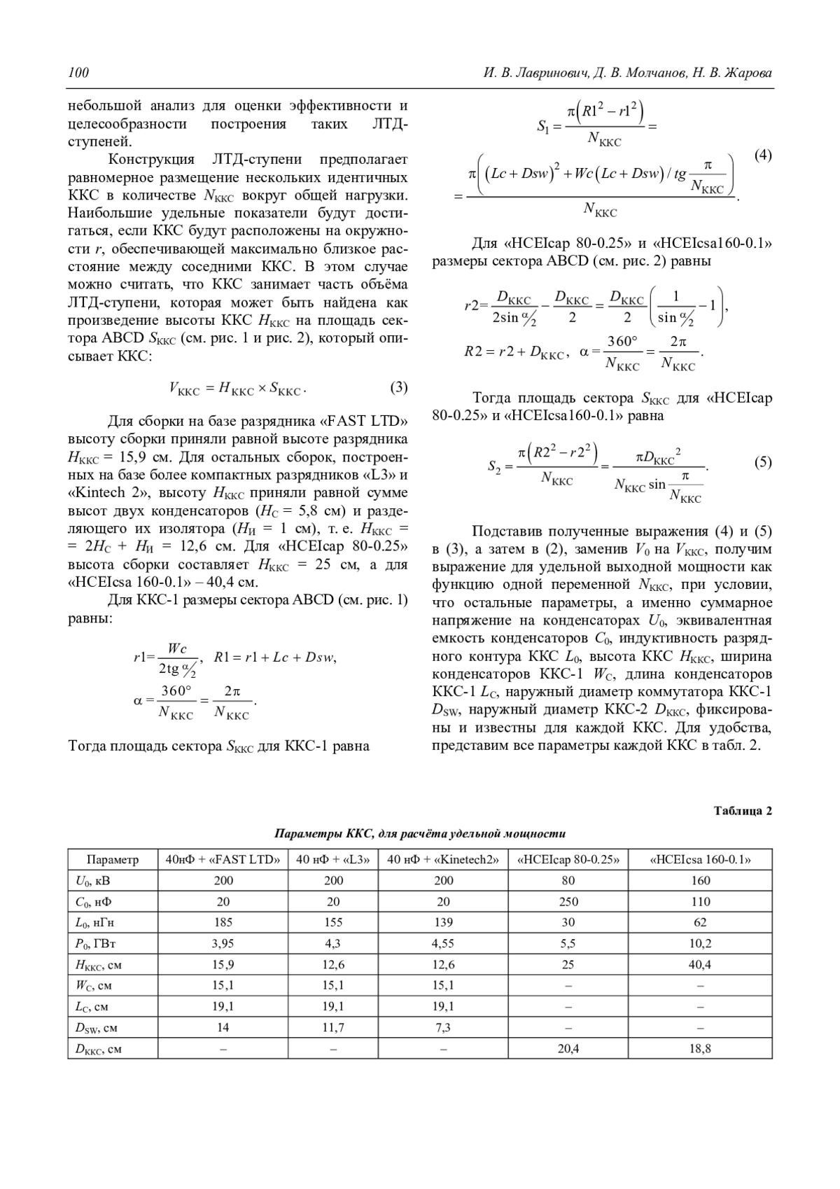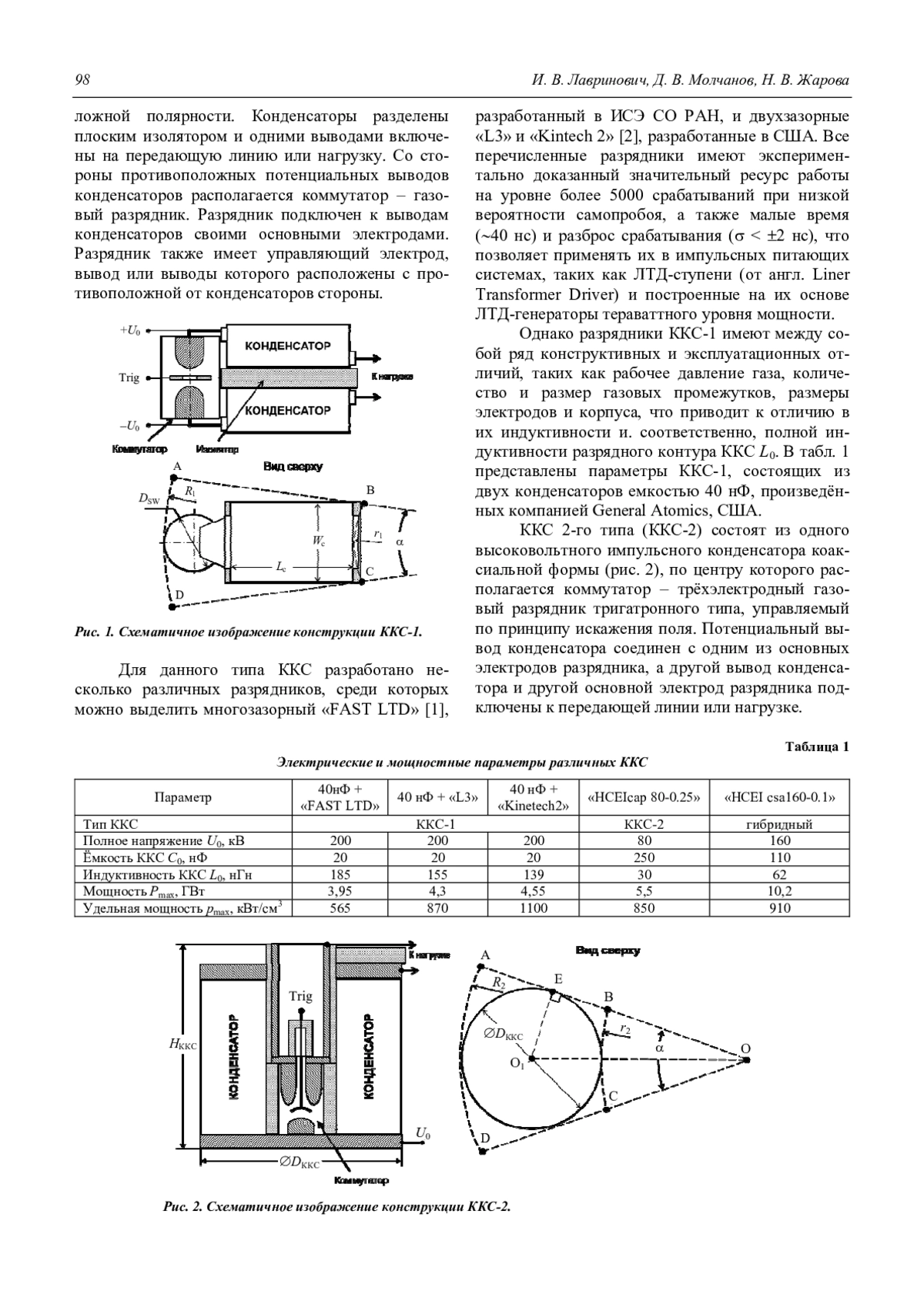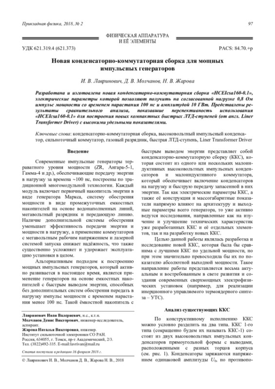 Лавринович И. В., Молчанов Д. В., Жарова Н. В. Новая конденсаторно-коммутаторная сборка для мощных импульсных генераторов 97