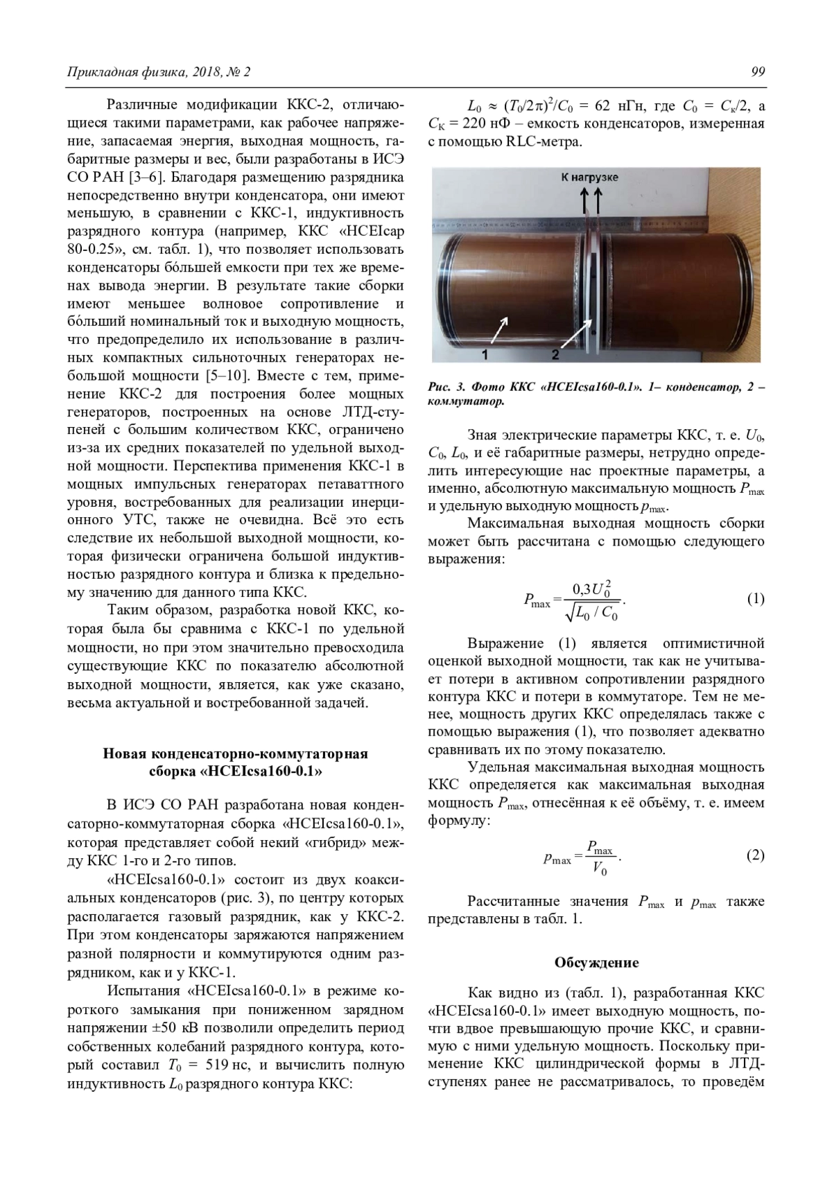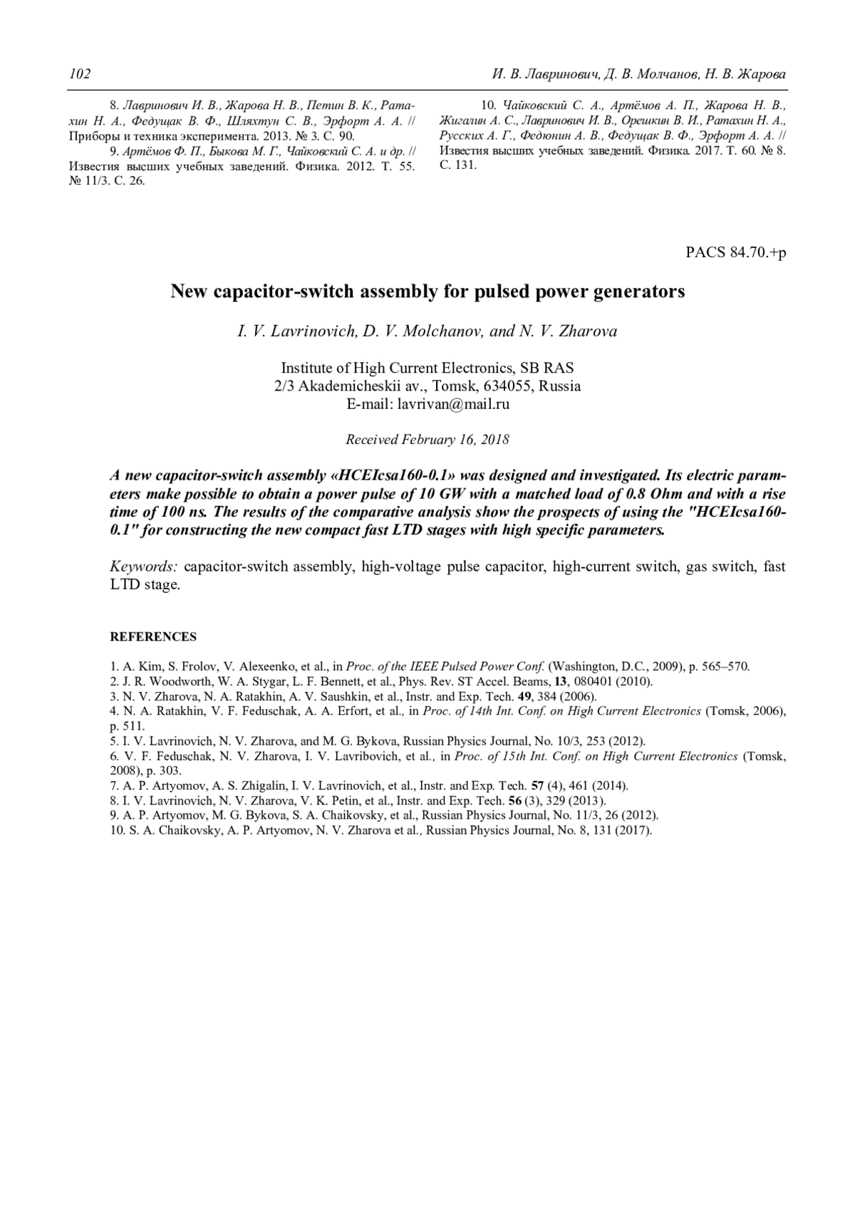 I. V. Lavrinovich, D. V. Molchanov, and N. V. Zharova New capacitor-switch assembly for pulsed power generators 97
