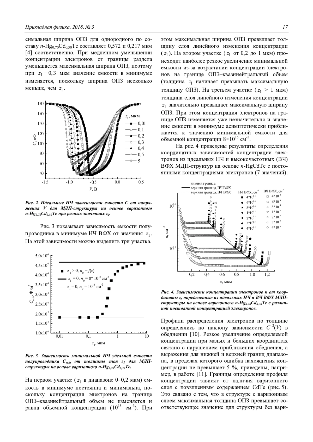 Моделирование вольт-фарадных характеристик МДП-структур на основе МЛЭ HgCdTe при неоднородном распределении состава и легирующей примеси Войцеховский А. В., Несмелов С. Н., Дзядух С. М. 15