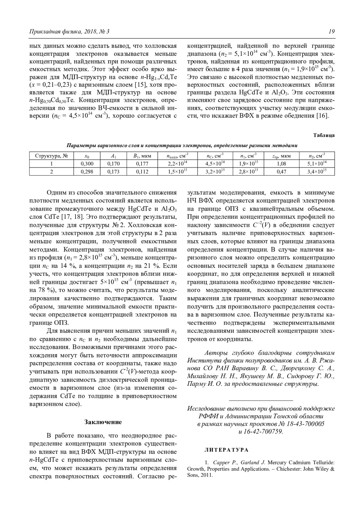 14. Voitsekhovskii A. V., Nesmelov S. N., Dzyadukh S. M. // J. Phys. Chem. Sol. 2017. Vol. 102. P. 42. EDN: XUUEZR