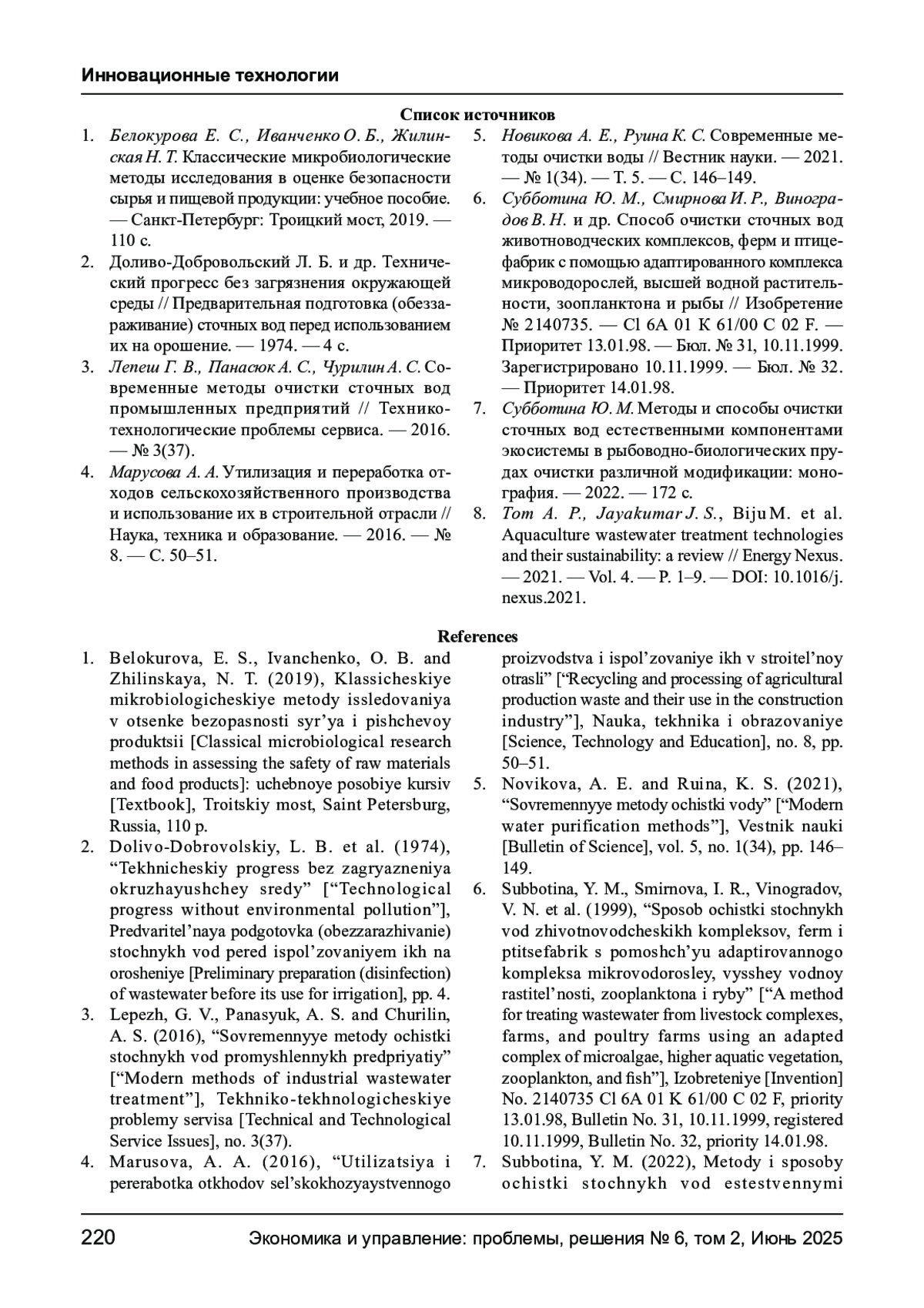 СУББОТИНА Ю. М., КУДРЯВЦЕВА А. Д. АЛЬГОЛИЗАЦИЯ ХОЗЯЙСТВЕННО-БЫТОВЫХ СТОЧНЫХ ВОД // ЭКОНОМИКА И УПРАВЛЕНИЕ: ПРОБЛЕМЫ, РЕШЕНИЯ. 2025. ТОМ 2 № 6